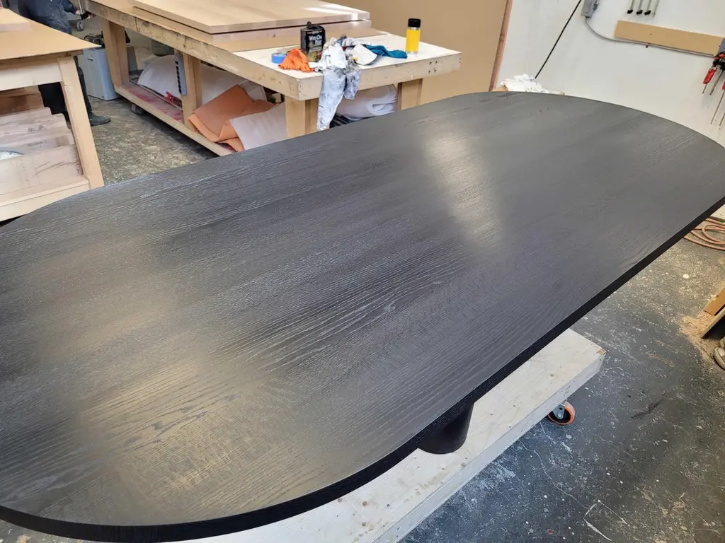 Designed to be sculptural yet honest in its simplicity, our Eden Dining Table can find itself a home in a contemporary environment, or as a statement piece in a more classical space. Sized at 96"L x 42"W x 30"H, this piece can be fabricated in flat-cut solid white oak, oxidized oak or bleached ash. Custom sizes can be accommodated - please inquire for pricing.We work with North American solid hardwoods. Please reach out for any customizations to species, stains, or leather quality. We are more than happy to provide more information and pricing as per your specifications. As all of our products are made-to-order, we cannot accept returns or refunds of purchased items. Crating, shipping & packaging materials are not included in the flat rate shipping quote provided. Please inquire within at the time of order for a quote on any applicable charges.Mary Ratcliffe Studio works with their own shipping & freight carriers and can supply a rate for this on request.Our larger & fragile works will be custom crated & packed for shipping. Some of our smaller items can go out in rigid foam lined boxes via ground shipping. Please inquire within for quotes on these options and related costs.Installation may be required for your piece.Local Delivery within the GTA is available. MRS also works with 3rd party delivery teams in the Toronto area for in-home delivery & installation of your piece should you wish to have this arranged/quoted. Any applicable customs/duties fees are the responsibility of the receiver.