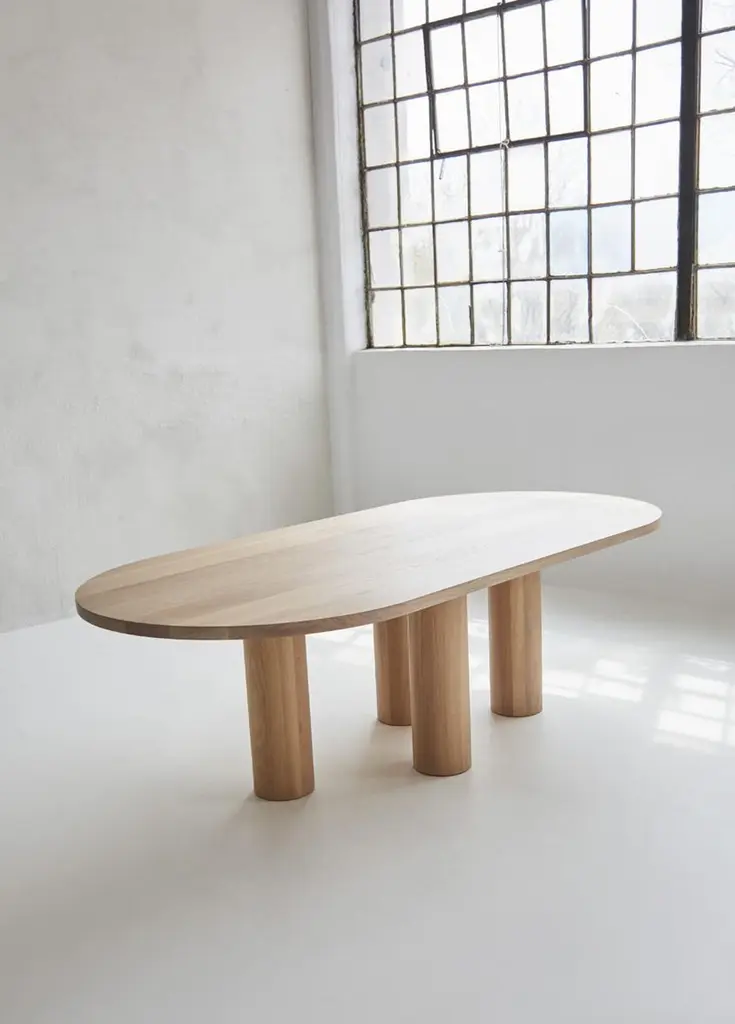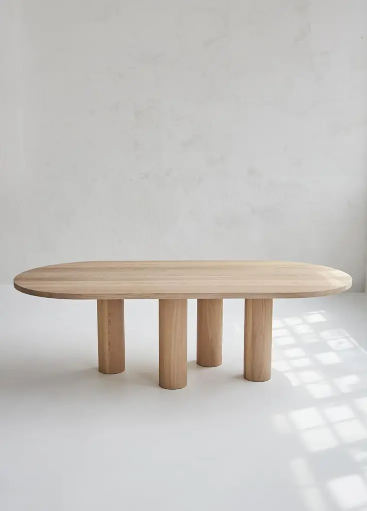 Designed to be sculptural yet honest in its simplicity, our Eden Dining Table can find itself a home in a contemporary environment, or as a statement piece in a more classical space. Sized at 96"L x 42"W x 30"H, this piece can be fabricated in flat-cut solid white oak, oxidized oak or bleached ash. Custom sizes can be accommodated - please inquire for pricing.We work with North American solid hardwoods. Please reach out for any customizations to species, stains, or leather quality. We are more than happy to provide more information and pricing as per your specifications. As all of our products are made-to-order, we cannot accept returns or refunds of purchased items. Crating, shipping & packaging materials are not included in the flat rate shipping quote provided. Please inquire within at the time of order for a quote on any applicable charges.Mary Ratcliffe Studio works with their own shipping & freight carriers and can supply a rate for this on request.Our larger & fragile works will be custom crated & packed for shipping. Some of our smaller items can go out in rigid foam lined boxes via ground shipping. Please inquire within for quotes on these options and related costs.Installation may be required for your piece.Local Delivery within the GTA is available. MRS also works with 3rd party delivery teams in the Toronto area for in-home delivery & installation of your piece should you wish to have this arranged/quoted. Any applicable customs/duties fees are the responsibility of the receiver.