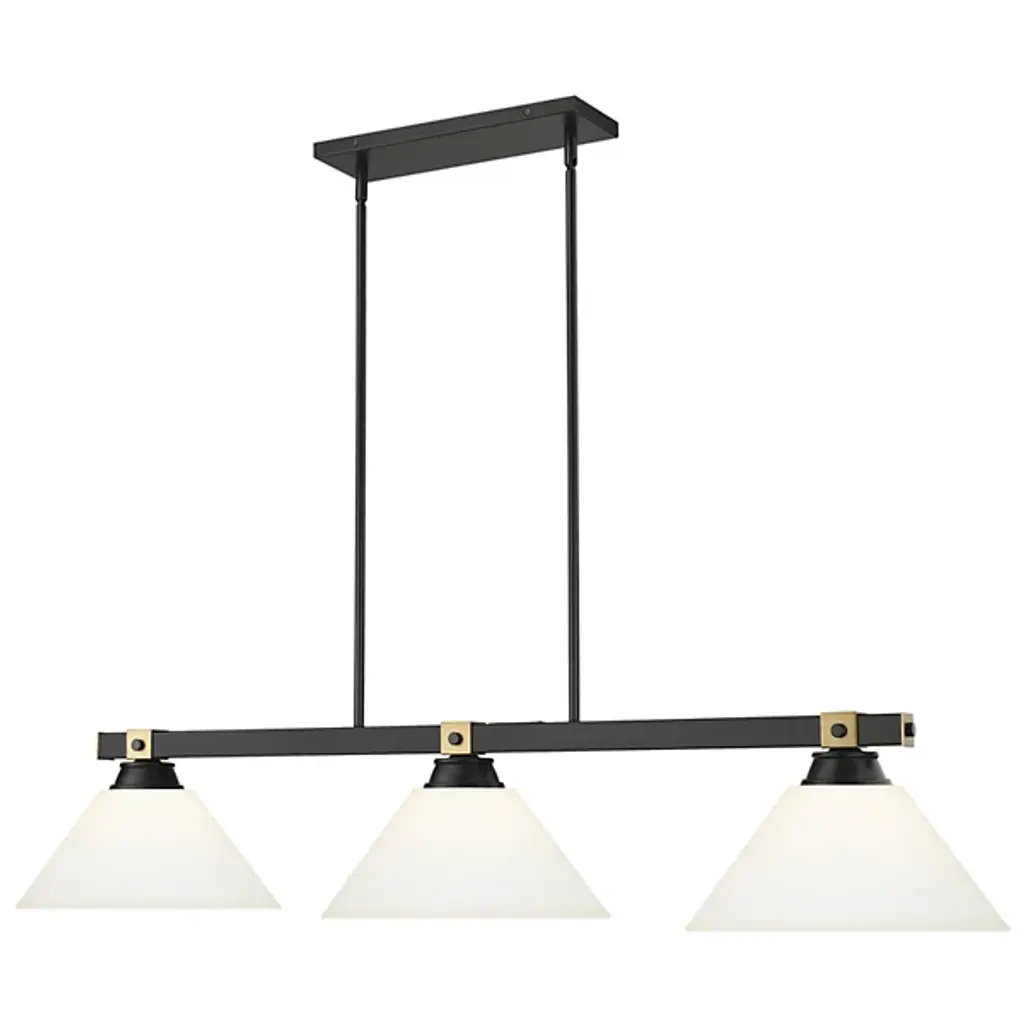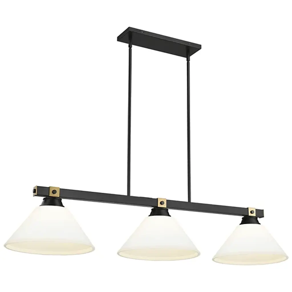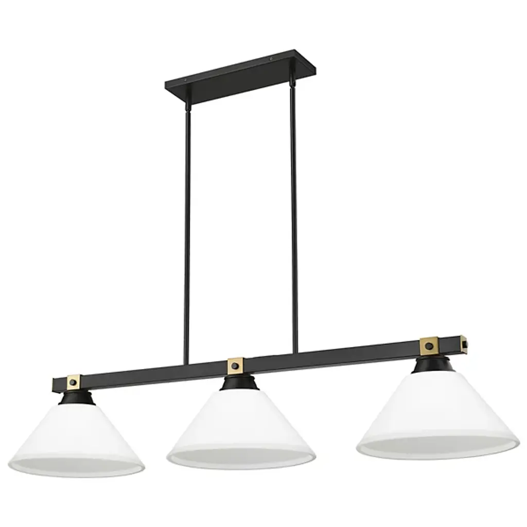 The Efren Linear Suspension from Huxe combines sleek design with refined details, making it an ideal lighting solution for gaming tables, dining areas, or kitchen islands. Its elongated profile is finished in matte black, creating a bold contrast with the soft white shades for a clean, contemporary aesthetic. Brass accents add a subtle touch of warmth and sophistication, enhancing its overall elegance. Designed for both functionality and style, this pendant provides balanced illumination while complementing a variety of interiors.
