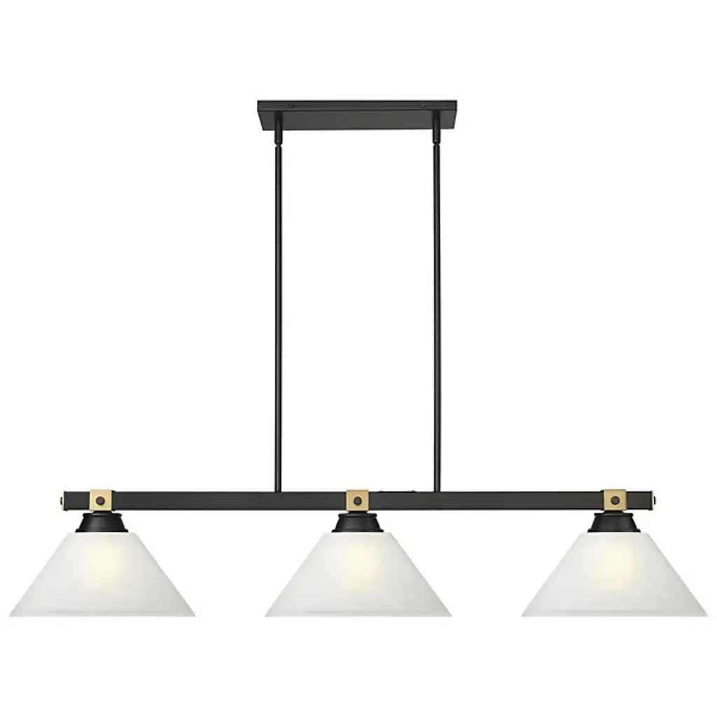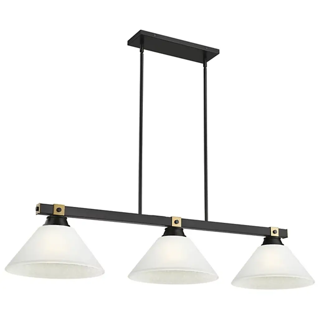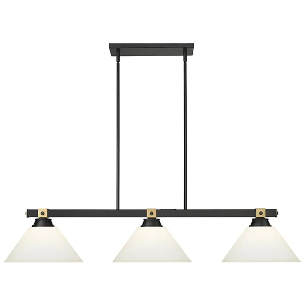 The Efren Linear Suspension from Huxe combines sleek design with refined details, making it an ideal lighting solution for gaming tables, dining areas, or kitchen islands. Its elongated profile is finished in matte black, creating a bold contrast with the soft white shades for a clean, contemporary aesthetic. Brass accents add a subtle touch of warmth and sophistication, enhancing its overall elegance. Designed for both functionality and style, this pendant provides balanced illumination while complementing a variety of interiors.