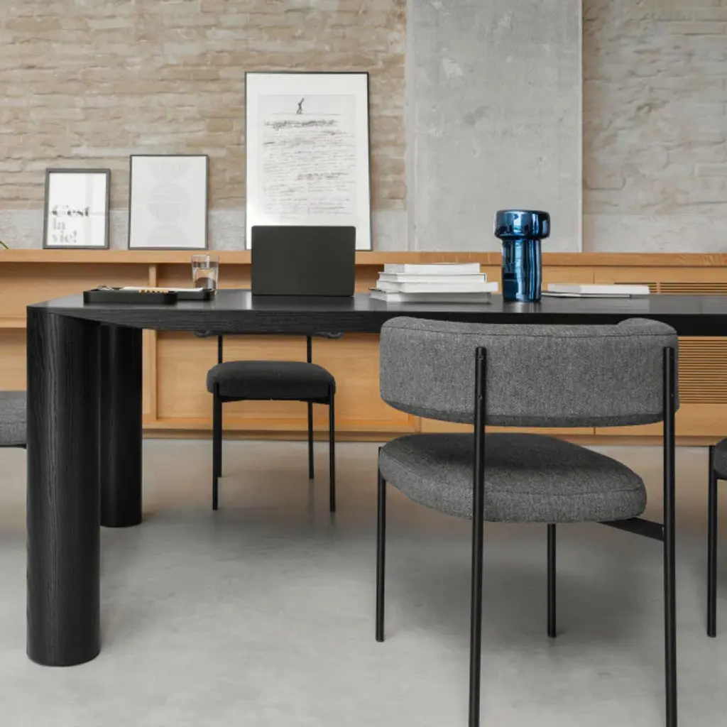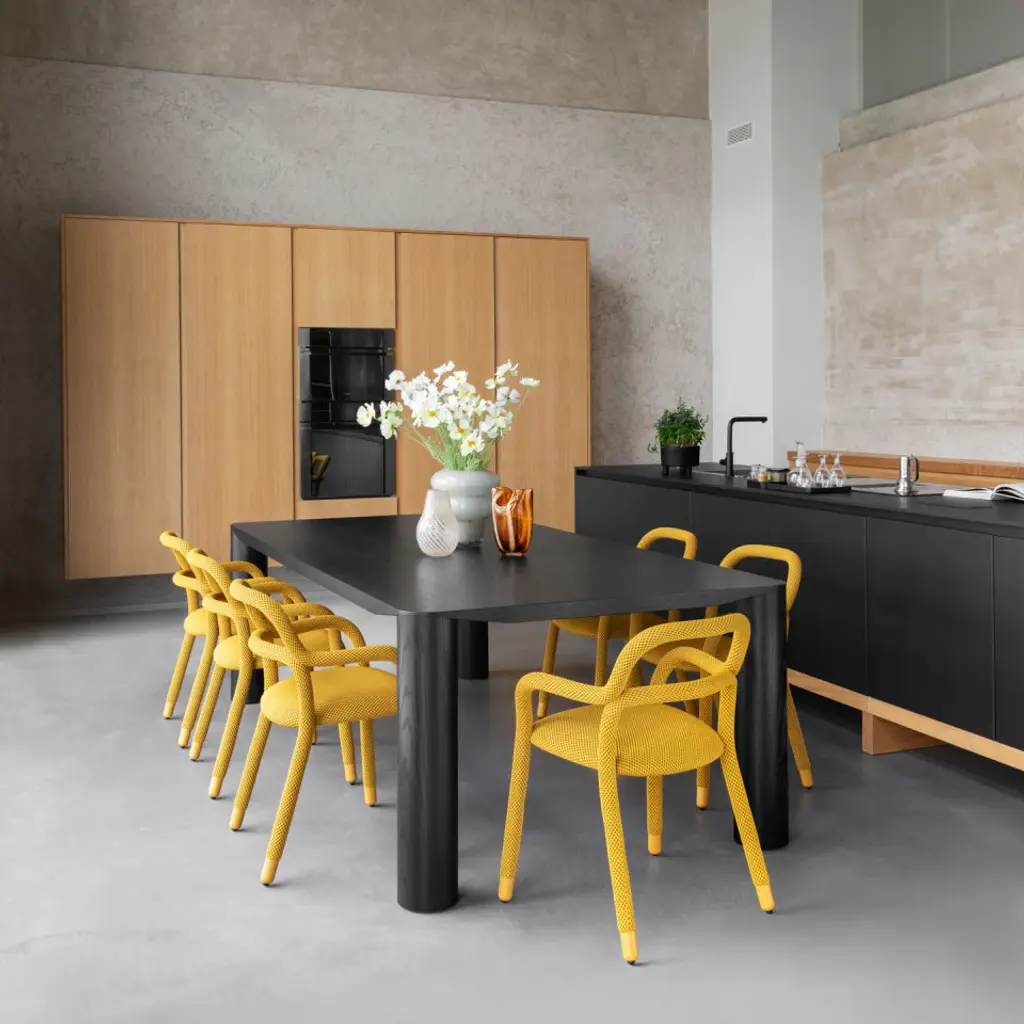 The Eggen Dining Table by studioPANG for MIDJ commands attention with its clean, essential lines and striking visual tension where the leg meets the top. Designed for both residential and collaborative workspaces, it combines a majestic presence with refined aesthetics, free from visible attachments. Available in 2.5- and 3-meter lengths, its technologically advanced top ensures exceptional stability. Crafted in ash wood, walnut, or oak, Eggen brings sophisticated strength and timeless elegance to any setting. Highlights