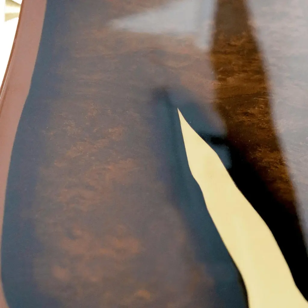 Elegant Art Deco Romantic Wooden Brown, Black, White Console With Brass, Gold