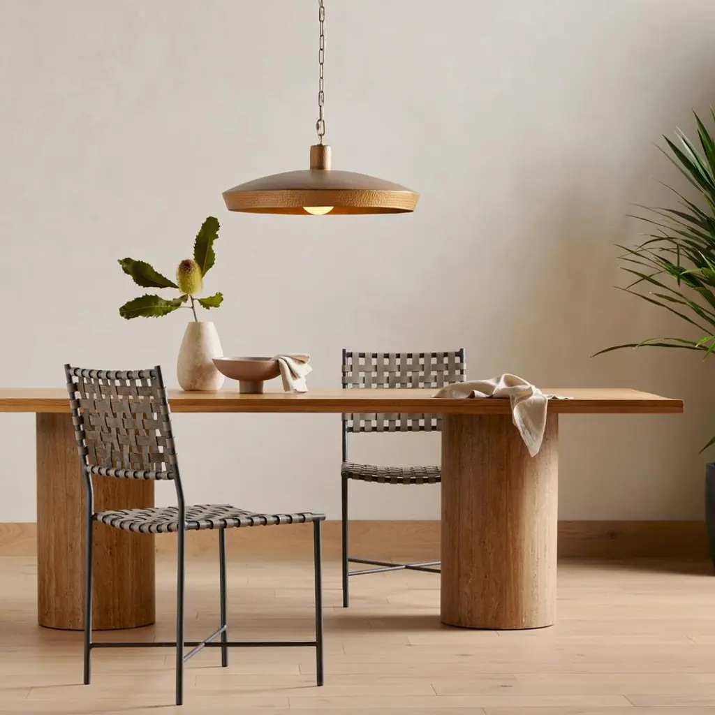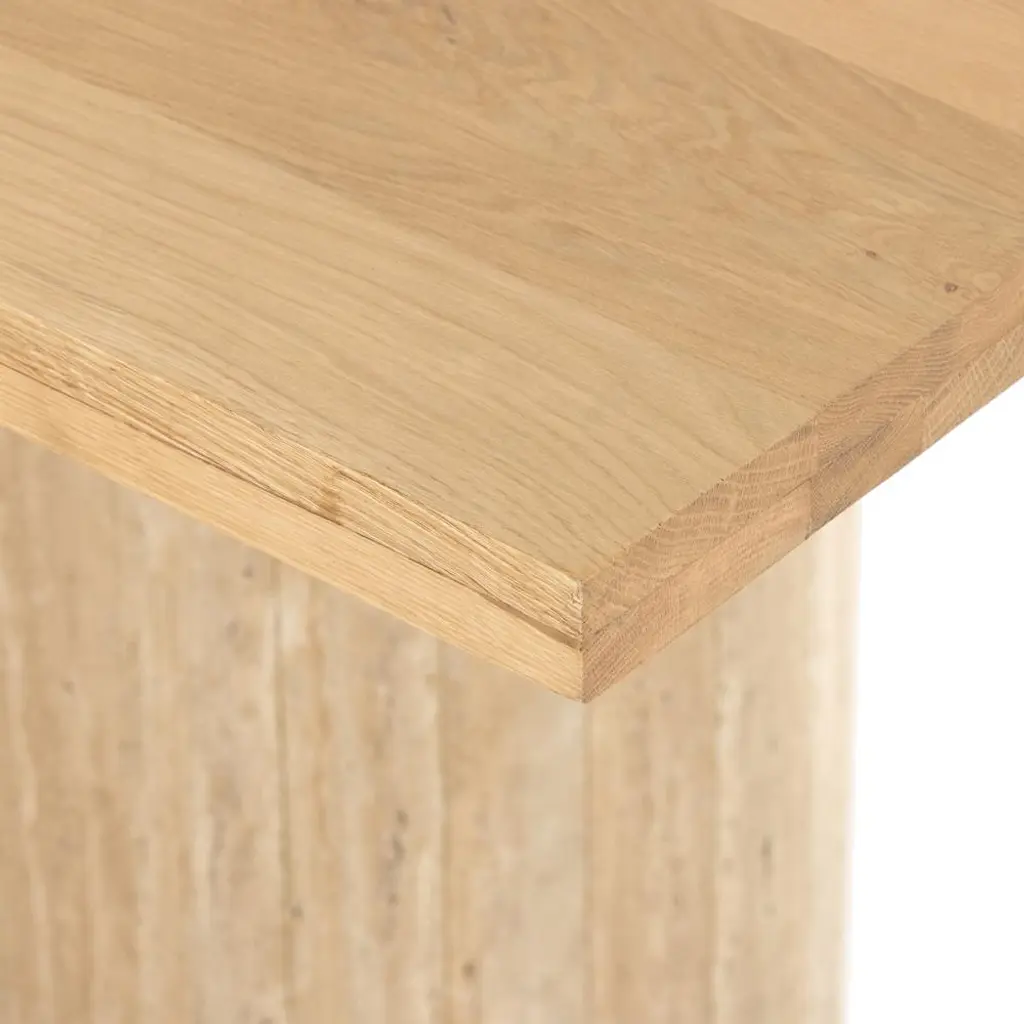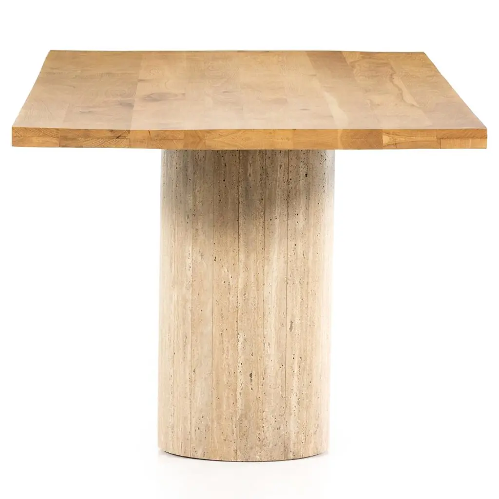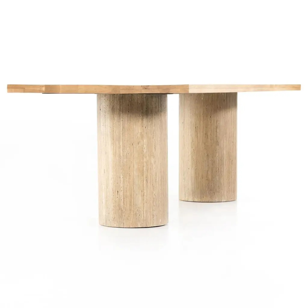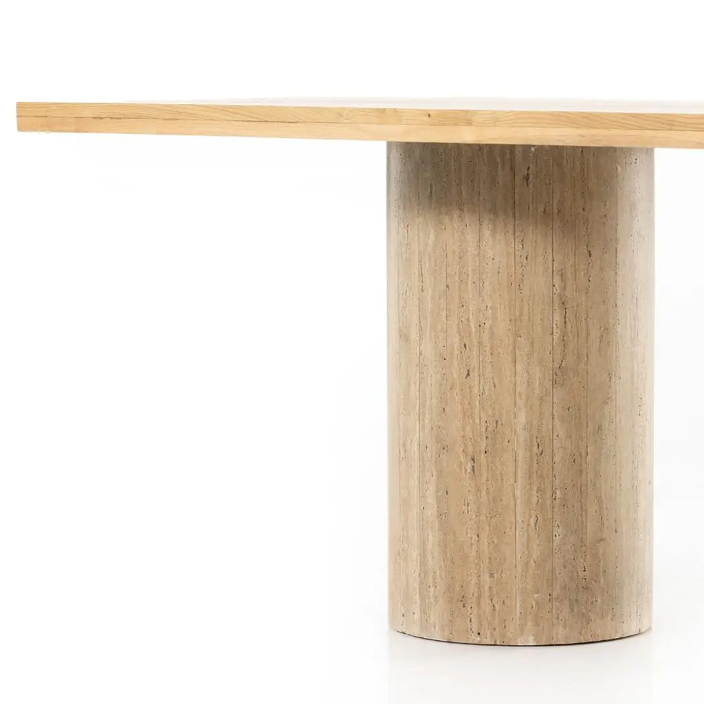 Elene Rustic Natural Brown Oak Travertine Base Rectangular Dining Table - 94"w
