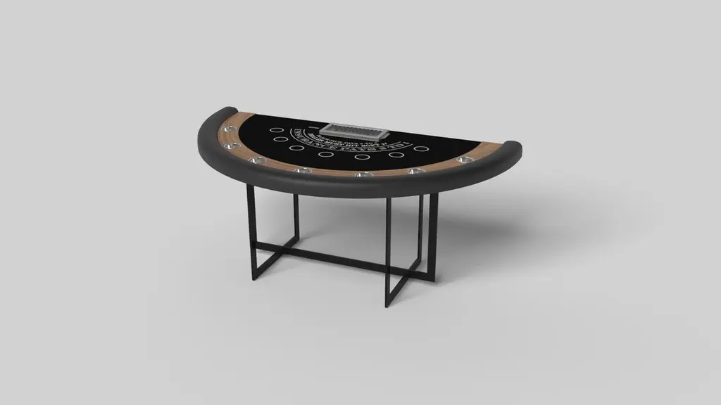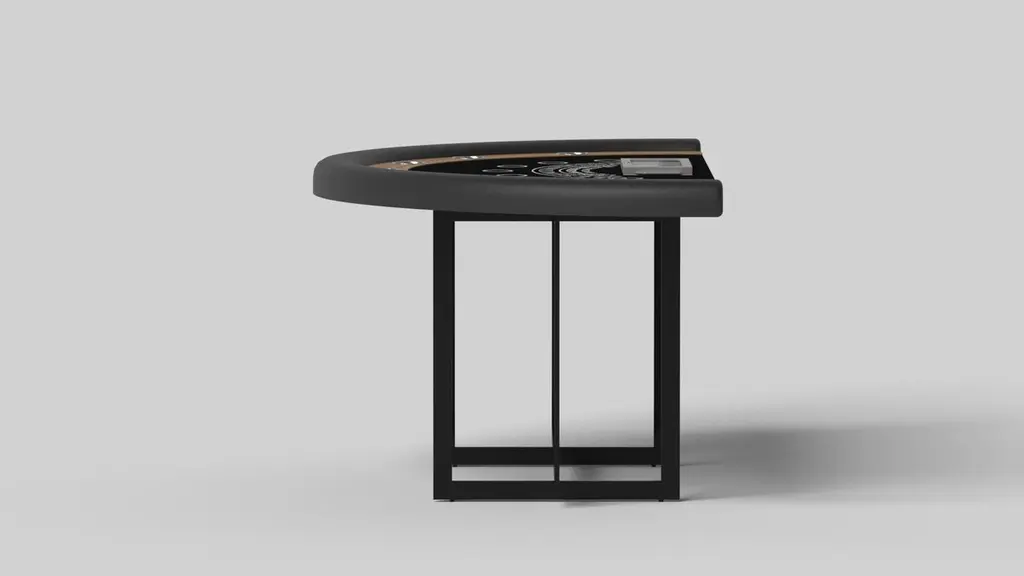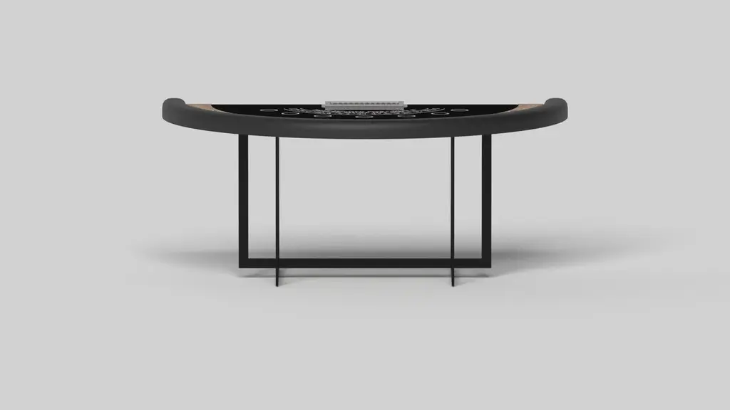 With an open metal foundation, our Beso table is a unique expression of contemporary forms and negative space. This blackjack table is handcrafted by our master artisans with a rectangle-in-rectangle base that echoes the angles and edges of a regulation game top. The aesthetic is simple yet sleek, combining superior playability with uncompromised style.Size:88”X46”X30” (Dining Height)Custom Sizes Available Per Request
