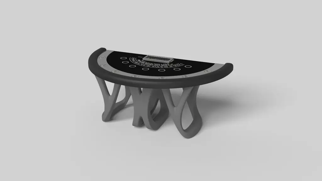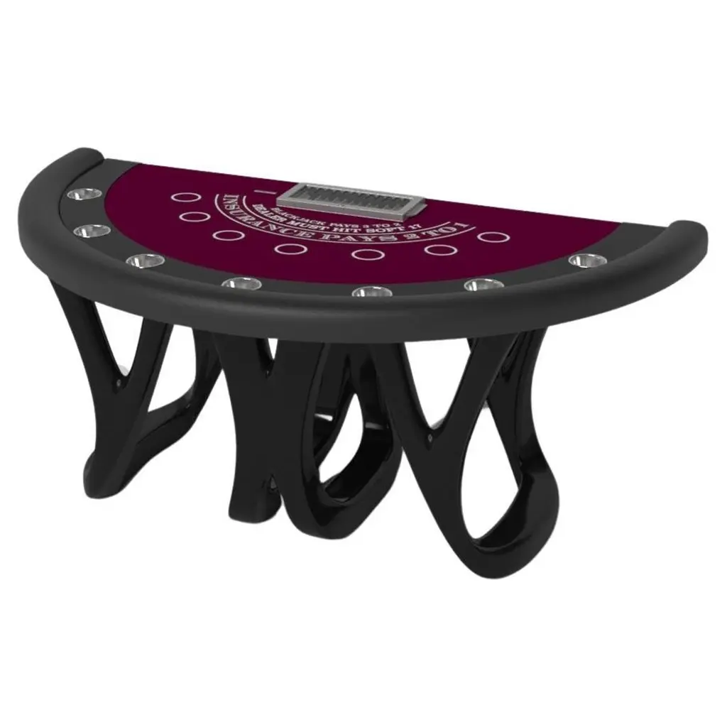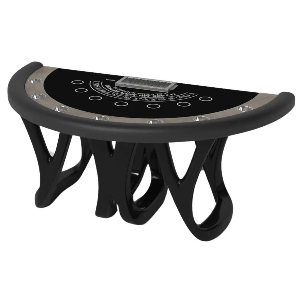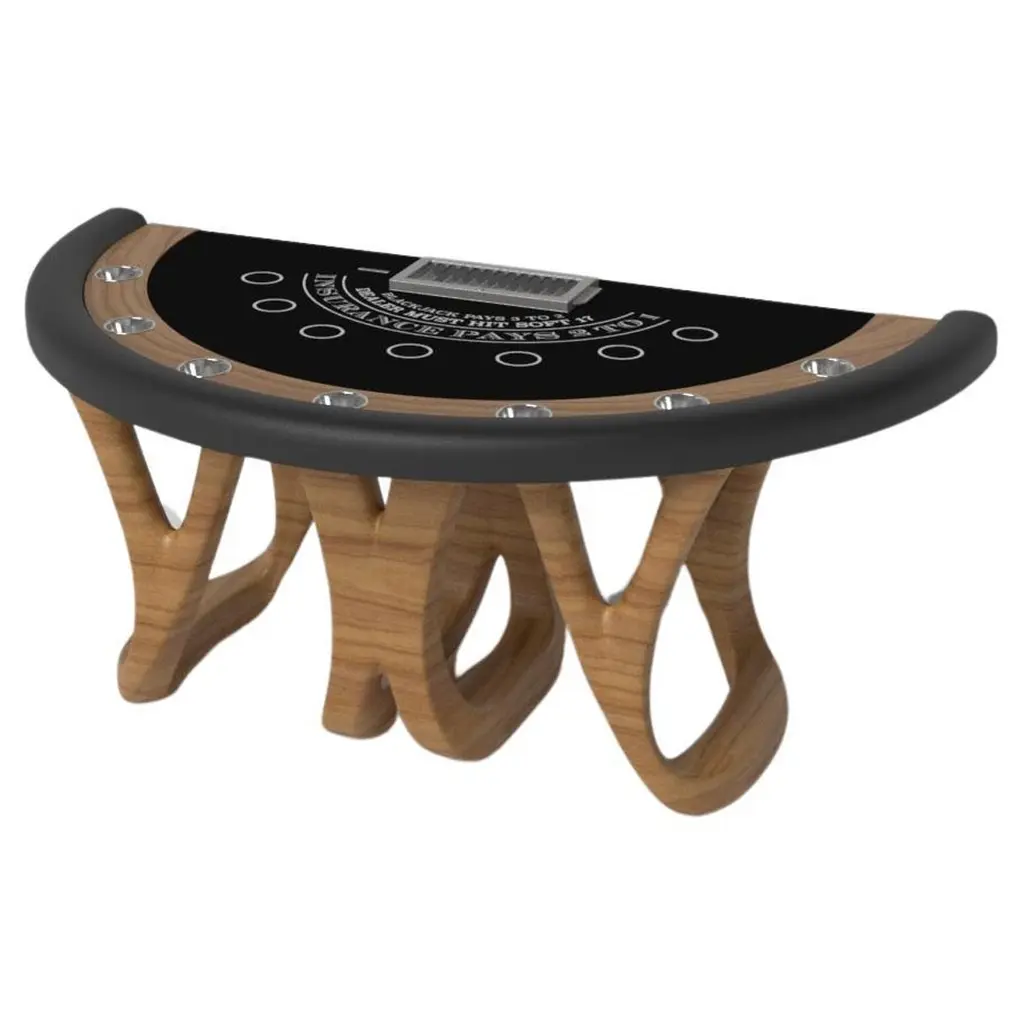Inspired by the work of Antoni Gaudi and the movement of Catalan Modernism, the Draco blackjack table in walnut boasts bold style with smooth, curved legs and a casino-grade table top with a chip rack and betting circles for professional game play. Expertly crafted from top to bottom, this table features a high-end, contemporary design in a smooth walnut finish.Size:88”X46”X30” (Dining Height)Custom Sizes Available Per Request