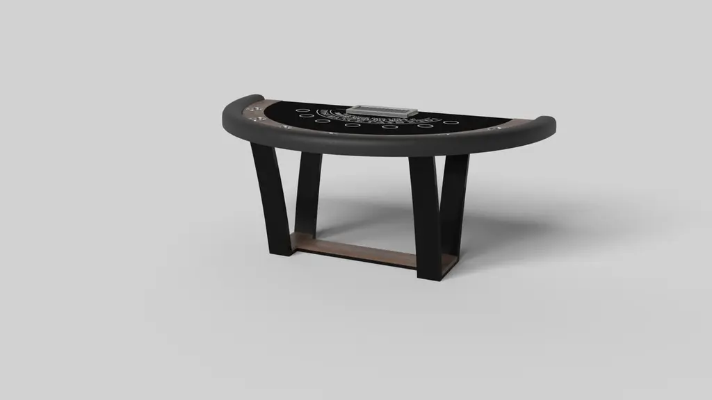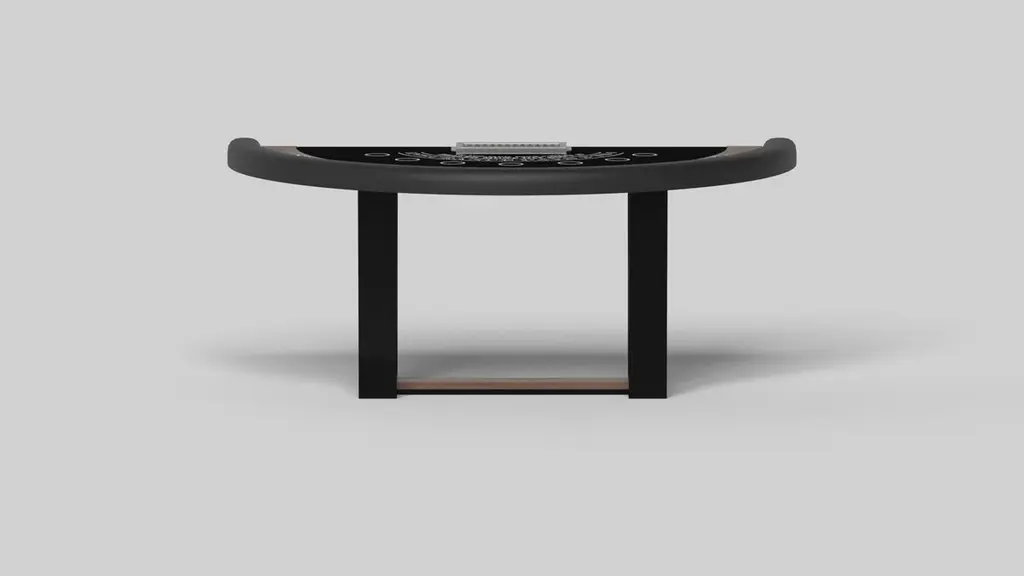 With an I-shaped metal base, slightly sloped metal legs, and a contrasting wood top, the Elite blackjack table exudes modern sophistication while evoking a sense of art deco design. This table is a confluence of style, made to meet today's demands and appeal to tomorrow's sense of style, while also harkening back to the past.Size:88”X46”X30” (Dining Height)Custom Sizes Available Per Request