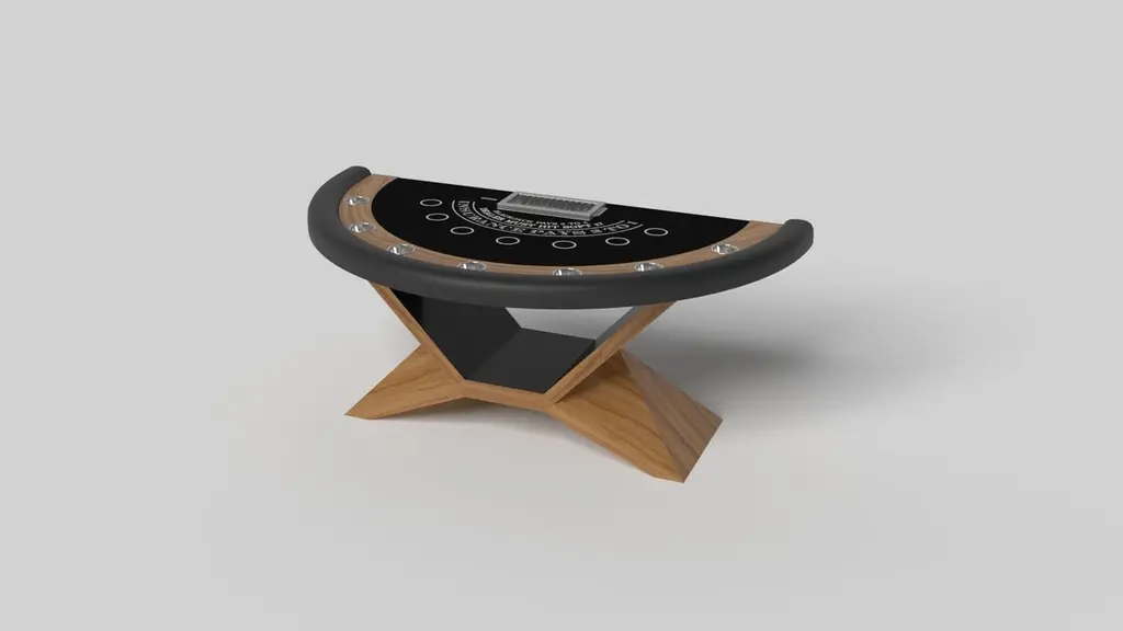In chrome metal, the Kors blackjack table is a superior example of contrasting geometric forms. This table features an angular base that highlights the beauty of negative space from the front view. From the side view, it offers a completely different perspective with unexpected dimensional details that demand attention. The end result is a clean, modern design that offers equal parts style, sophistication, and superior playability.Size:88”X46”X30” (Dining Height)Custom Sizes Available Per Request