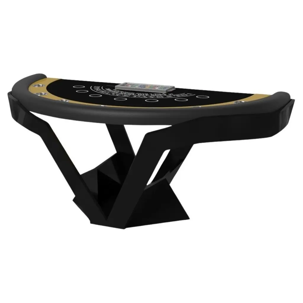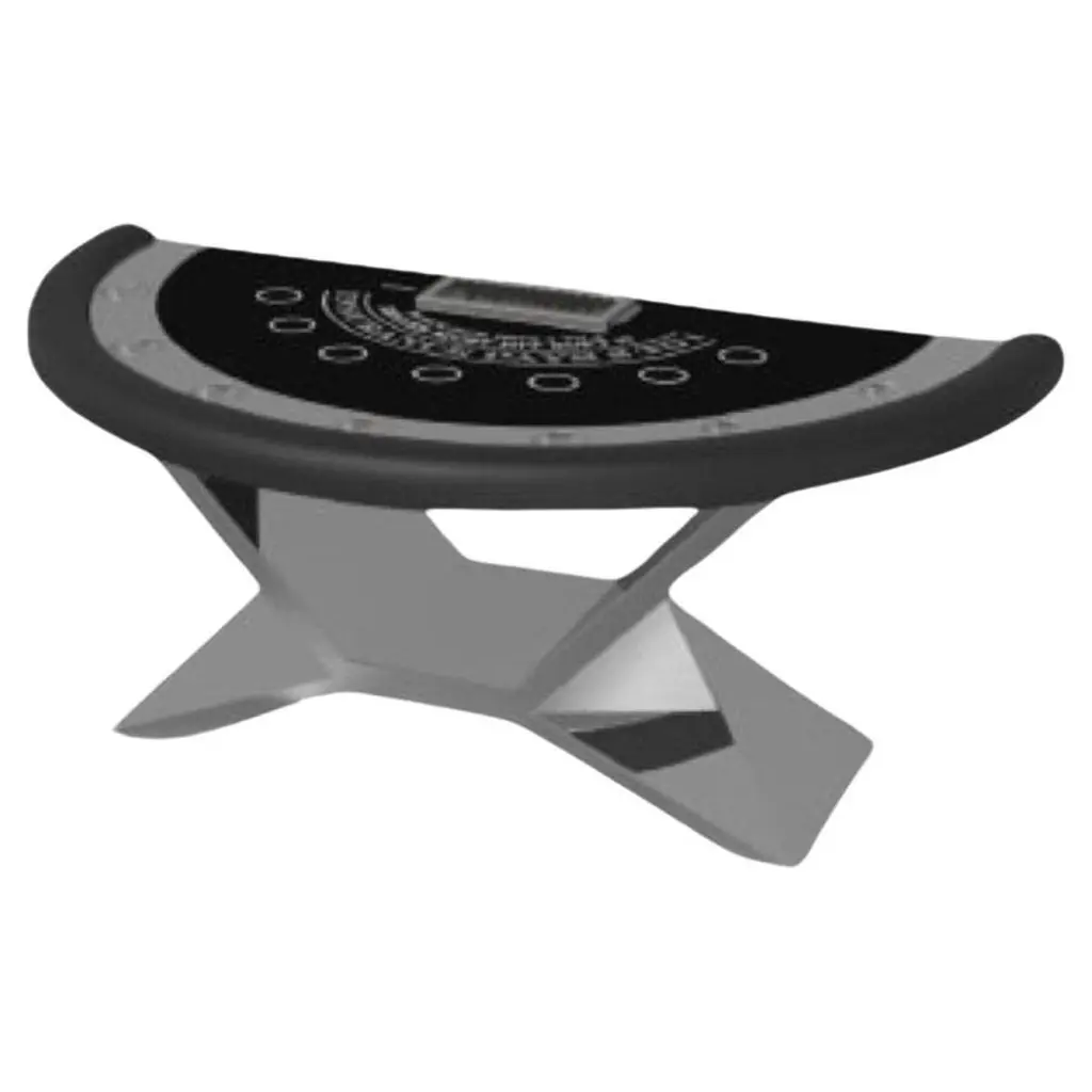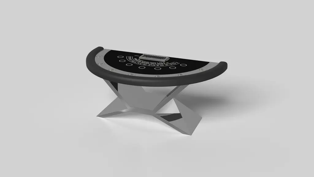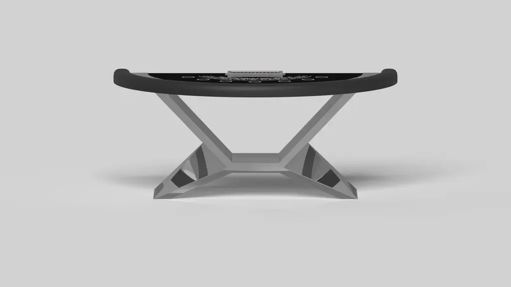 In chrome metal, the Kors blackjack table is a superior example of contrasting geometric forms. This table features an angular base that highlights the beauty of negative space from the front view. From the side view, it offers a completely different perspective with unexpected dimensional details that demand attention. The end result is a clean, modern design that offers equal parts style, sophistication, and superior playability.Size:88”X46”X30” (Dining Height)Custom Sizes Available Per Request