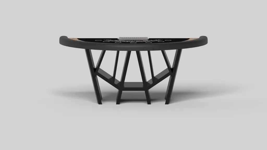 With a combination of acute angles, smooth lines, and geometric configurations, the Maze blackjack table in brushed aluminum is characterized by a labyrinth-inspired base with a mystifying motif. Beautifully detailed with a casino-grade top for game play, this luxury game table exudes cutting edge style and contemporary charm, making it a fascinating focal point in any room.Size:88”X46”X30” (Dining Height)Custom Sizes Available Per Request
