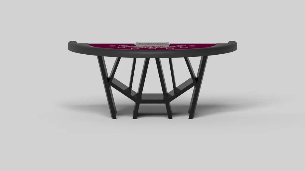 With a combination of acute angles, smooth lines, and geometric configurations, the Maze blackjack table in brushed aluminum is characterized by a labyrinth-inspired base with a mystifying motif. Beautifully detailed with a casino-grade top for game play, this luxury game table exudes cutting edge style and contemporary charm, making it a fascinating focal point in any room.Size:88”X46”X30” (Dining Height)Custom Sizes Available Per Request