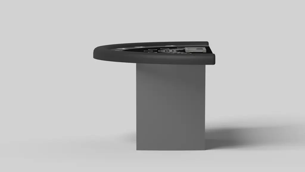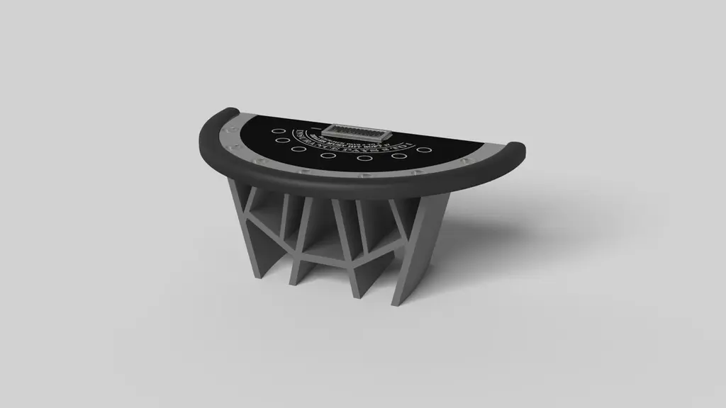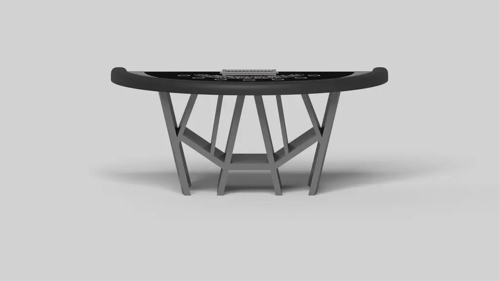 With a combination of acute angles, smooth lines, and geometric configurations, the Maze blackjack table in brushed aluminum is characterized by a labyrinth-inspired base with a mystifying motif. Beautifully detailed with a casino-grade top for game play, this luxury game table exudes cutting edge style and contemporary charm, making it a fascinating focal point in any room.Size:88”X46”X30” (Dining Height)Custom Sizes Available Per Request