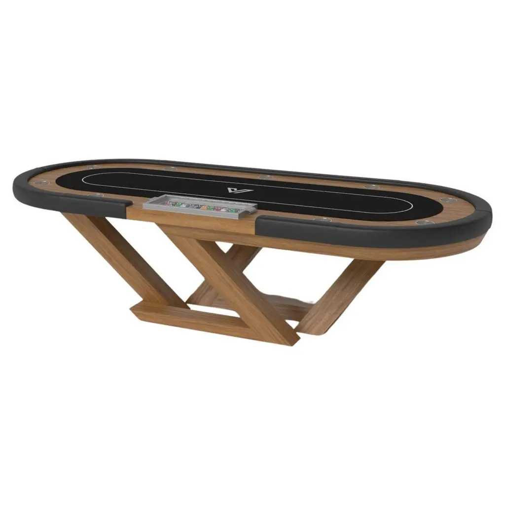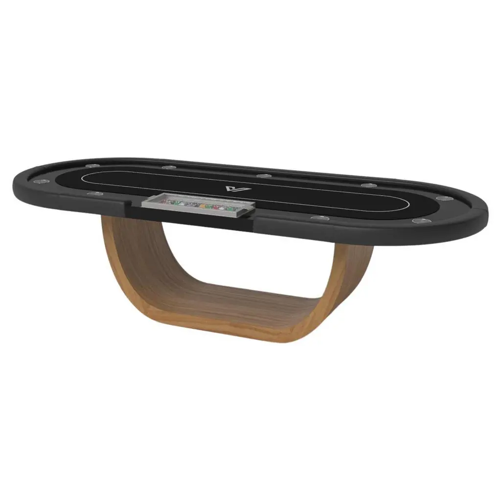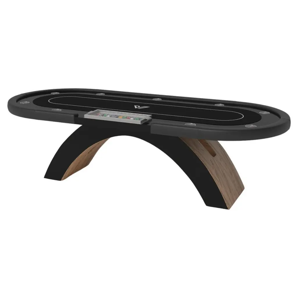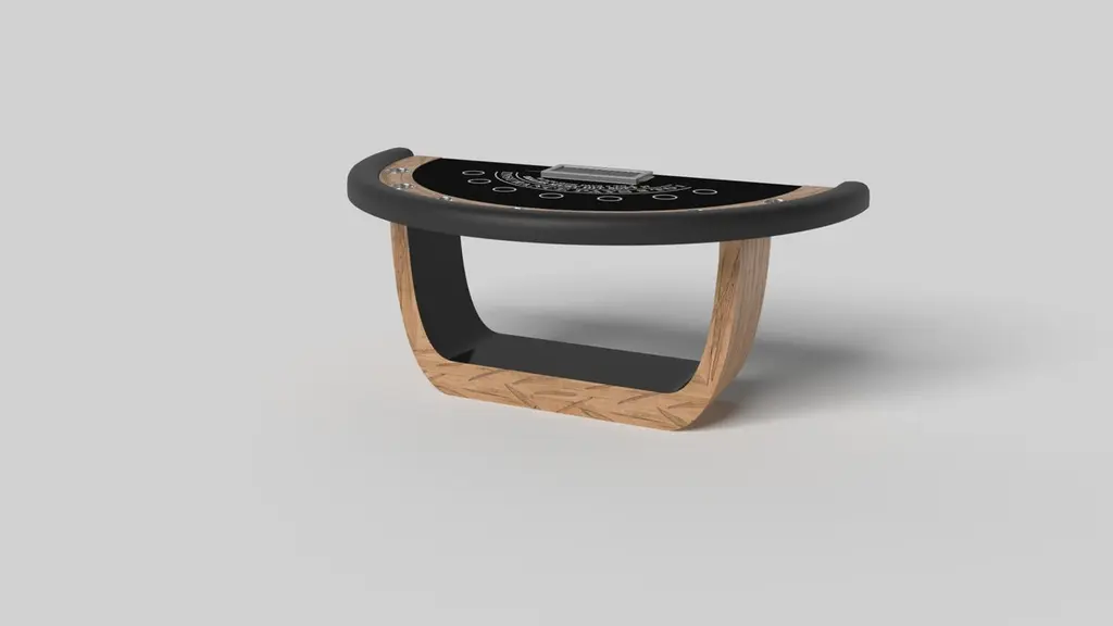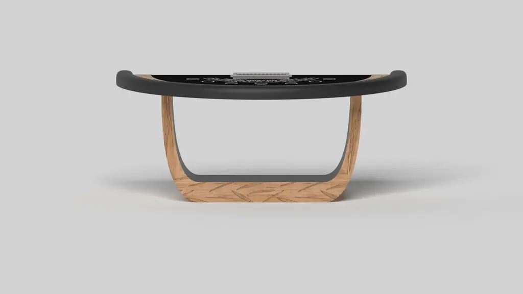 Handcrafted with intricate accents and a precision-carved curved base, the Sid blackjack table in black encompasses a series of smooth edges, distinctive details, and unconventional elements in one unique expression of luxury design. Built by hand with betting circles and a chip rack on the tabletop, this contemporary game table boasts a signature blend of expert craftsmanship and novel composition.Size:88”X46”X30” (Dining Height)Custom Sizes Available Per Request