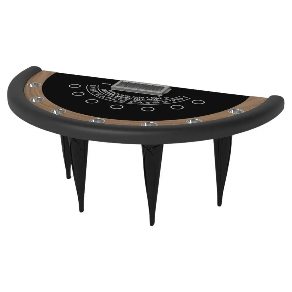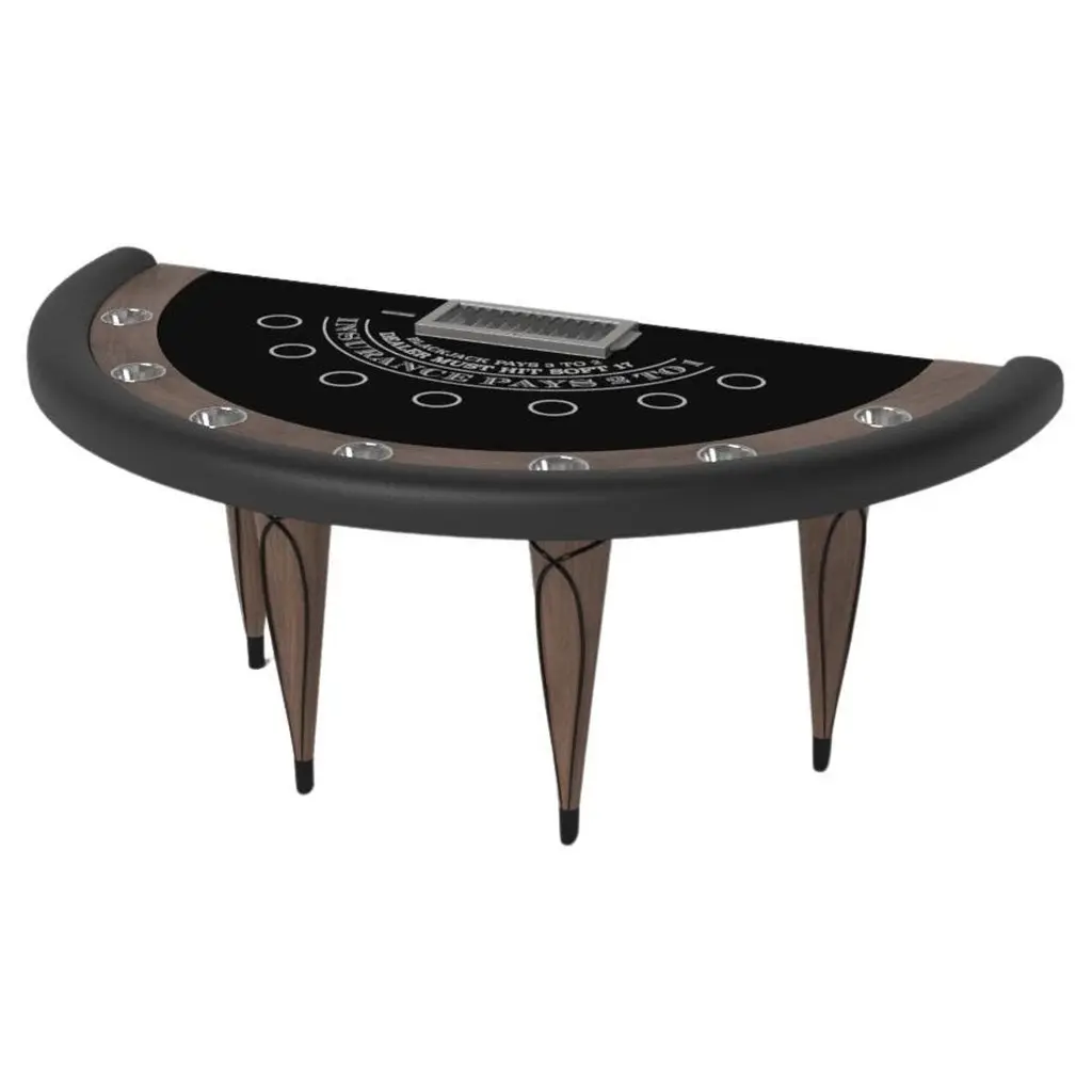 Minimalist design meets opulent elegance in the Trestle blackjack table. Detailed with a professional surface for endless game play, this contemporary table is expertly crafted. Square block legs give it a stark, geometric look that contributes to its timeless appeal.Size:88”X46”X30” (Dining Height)Custom Sizes Available Per Request