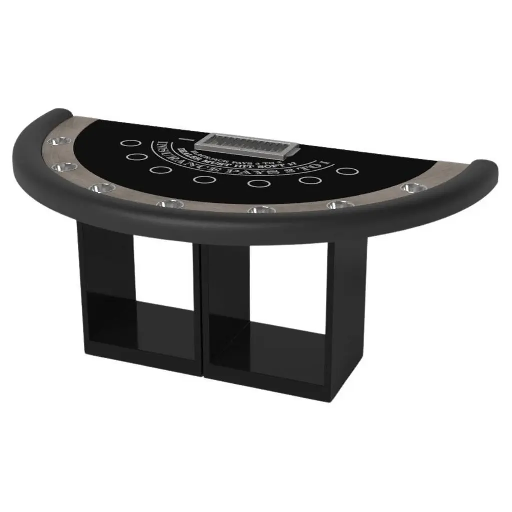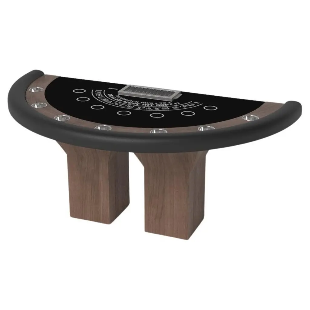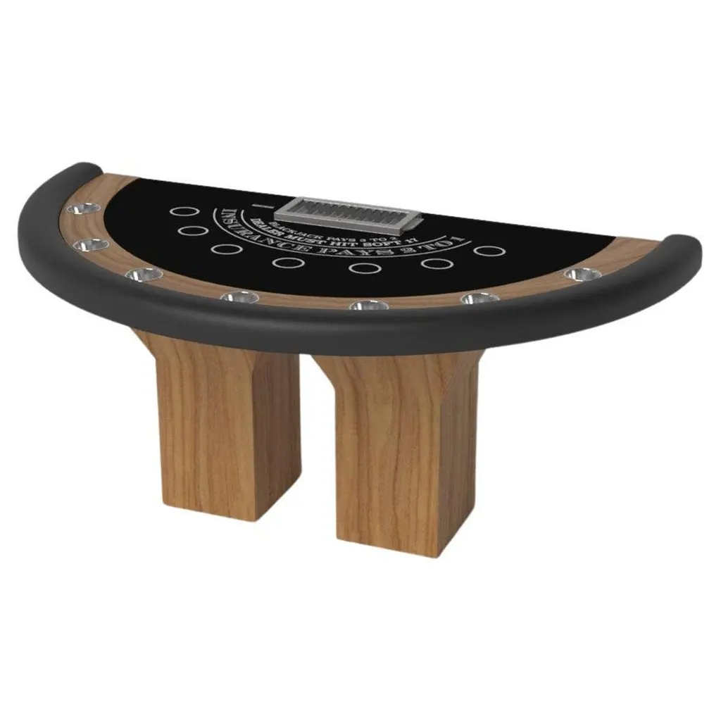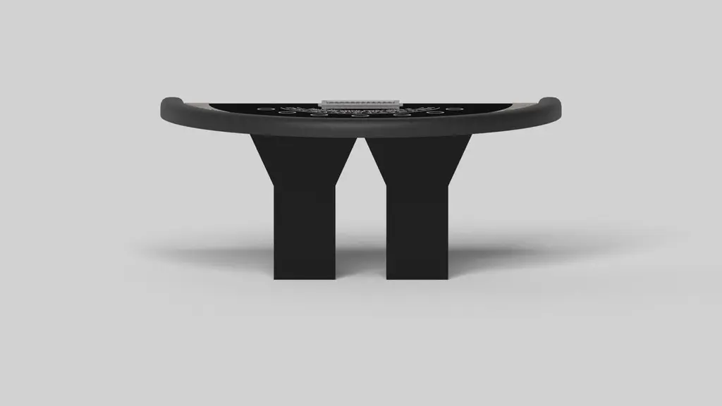 Minimalist design meets opulent elegance in the Trestle blackjack table. Detailed with a professional surface for endless game play, this contemporary table is expertly crafted. Square block legs give it a stark, geometric look that contributes to its timeless appeal.Size:88”X46”X30” (Dining Height)Custom Sizes Available Per Request
