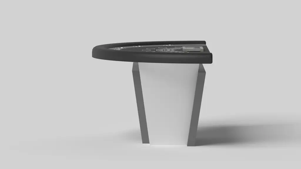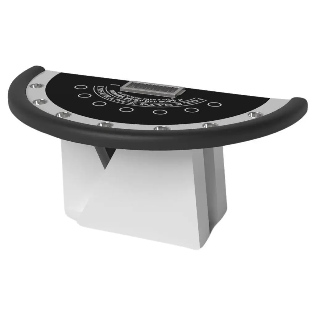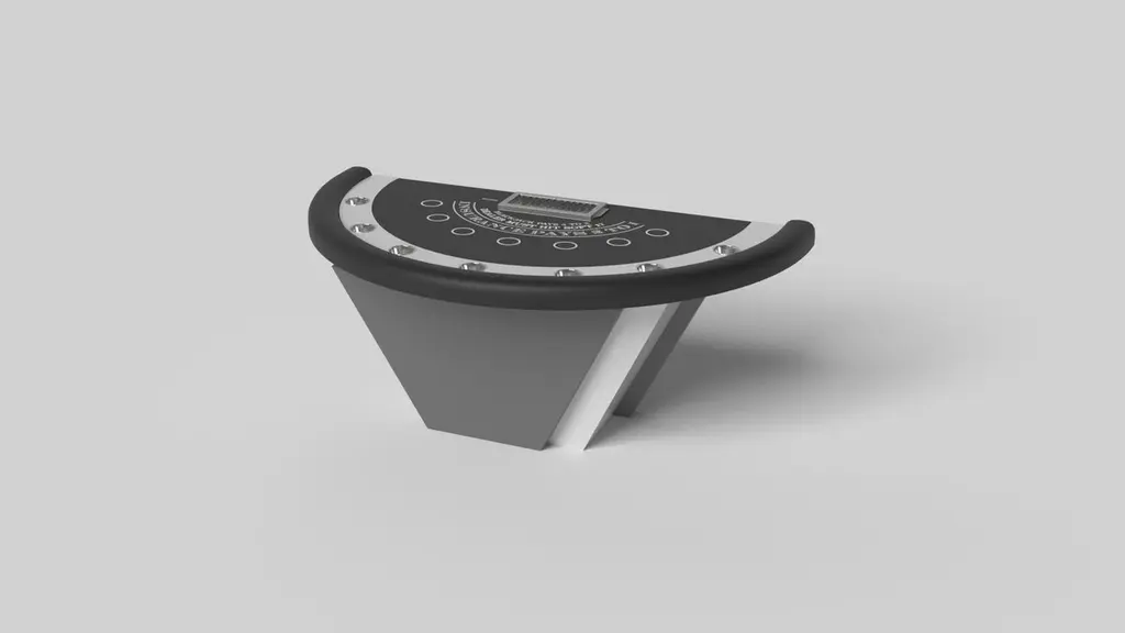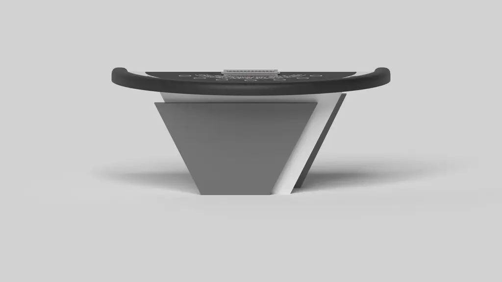 Handcrafted with clean lines, sharp angles, and a pyramid base, the Vogue blackjack table in brushed aluminum strikes the perfect balance between sport-inspired style and contemporary design. Timeless in its appeal and revered for its practicality and purpose, this cutting edge game table is beautifully crafted with a casino-grade tabletop that includes a chip rack and betting circles.Size:88”X46”X30” (Dining Height)Custom Sizes Available Per Request