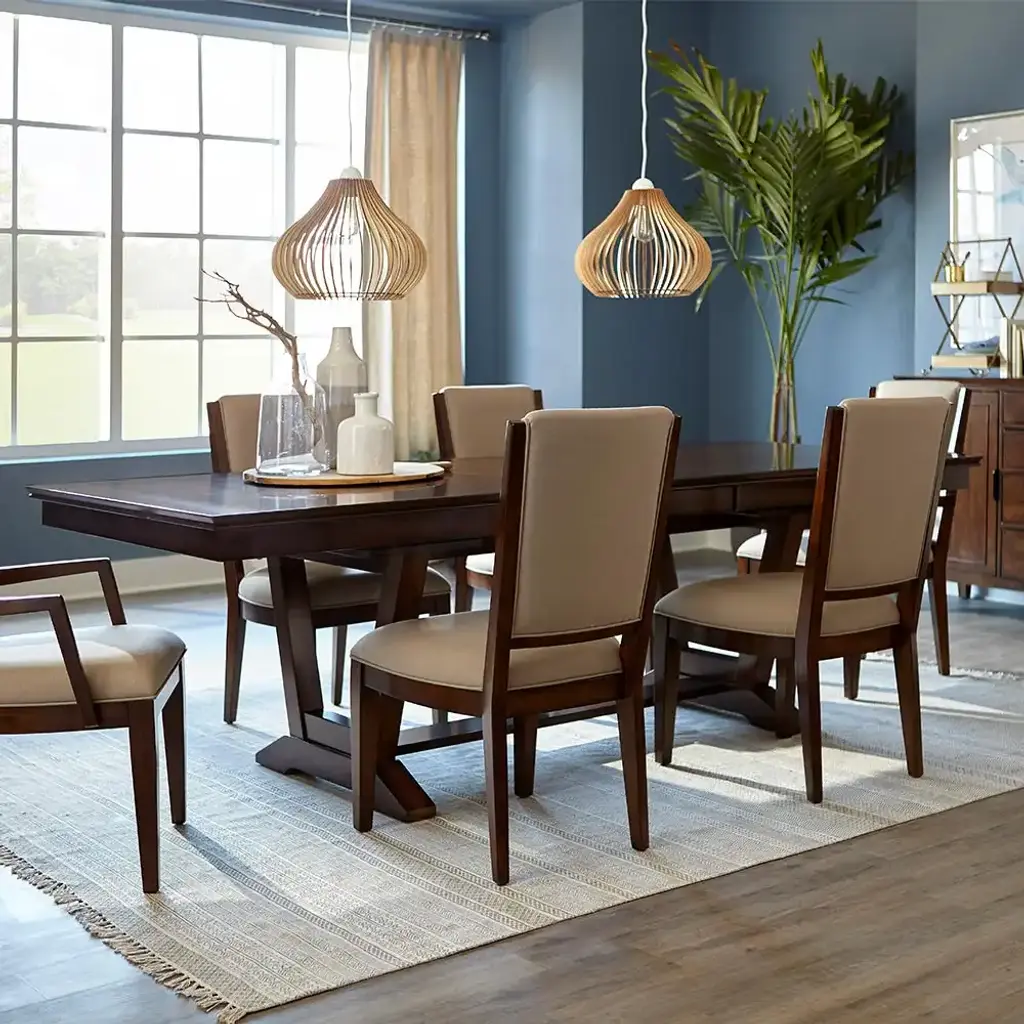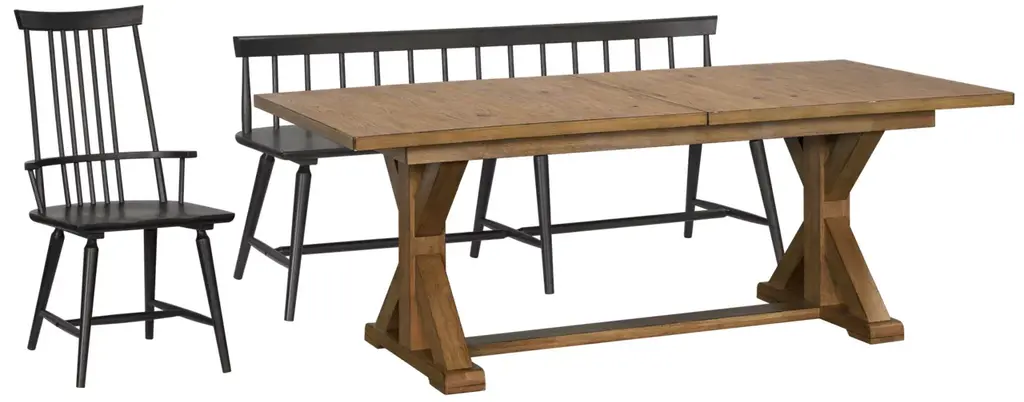 The Capris Rectangular Dining Table from the Elise Collection is a masterpiece of functionality and elegance. Crafted from genuine solid Alder and select hardwoods, this table showcases the natural beauty and durability of premium materials. Its versatile design includes two 20" leaves, with one conveniently self-storing, allowing you to effortlessly accommodate intimate gatherings or larger dinner parties. The table's surface is protected by the exclusive Kinguard Performance Finish, providing superior resistance against watermarks and spills, ensuring its timeless beauty endures through countless meals and memories. Whether hosting family dinners or grand celebrations, the Capris Rectangular Dining Table stands as a testament to superior craftsmanship and thoughtful design. Its classic silhouette and adaptable size make it the perfect centerpiece for any dining space, promising to be the heart of your home for generations to come.