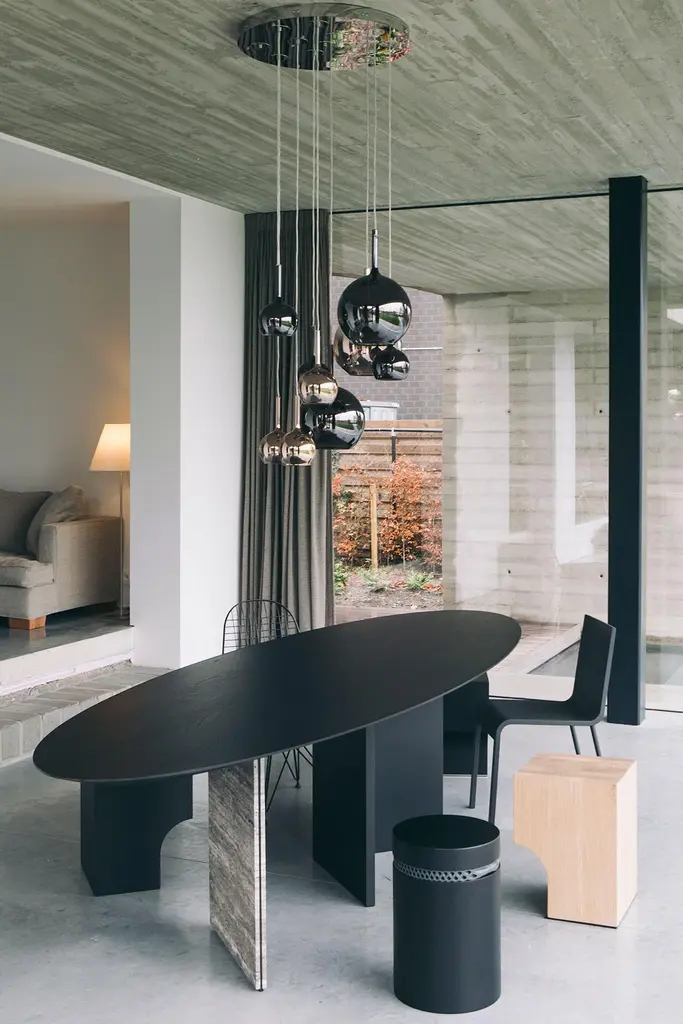 <p><em>Ellipse 01.1</em> is a spacious elliptical table. Playful in shape, distinguished in finishing and choice of materials. It is not only its size and social form that makes this piece of furniture stand out. What makes it truly unique is the characterful zigzag frame.</p> <p><em>Ellipse</em> is manufactured by craftsmen and made with the finest materials. The body of <em>ellipse 01.1</em> is made of black stained ash wood, which shows the wood drawing beautifully. The solo leg is finished with travertine elements.</p> <p>The table is designed by Jeroen Thys van den Audenaerde, one of barh's own designers. He has already earned his spurs in the sector. Daily life, architecture, and art are always close by when he designs. Inspiration is everywhere.</p> Labeled by Maker,Labeled by Maker