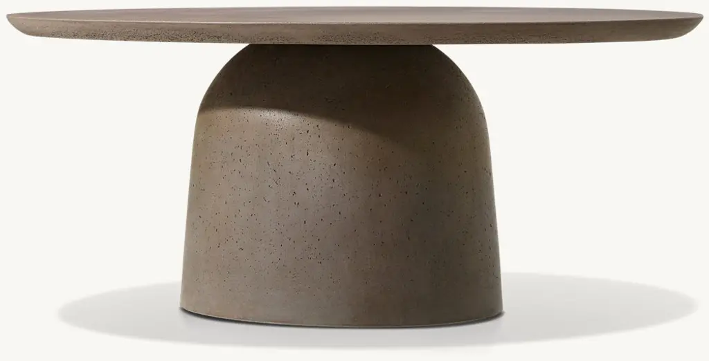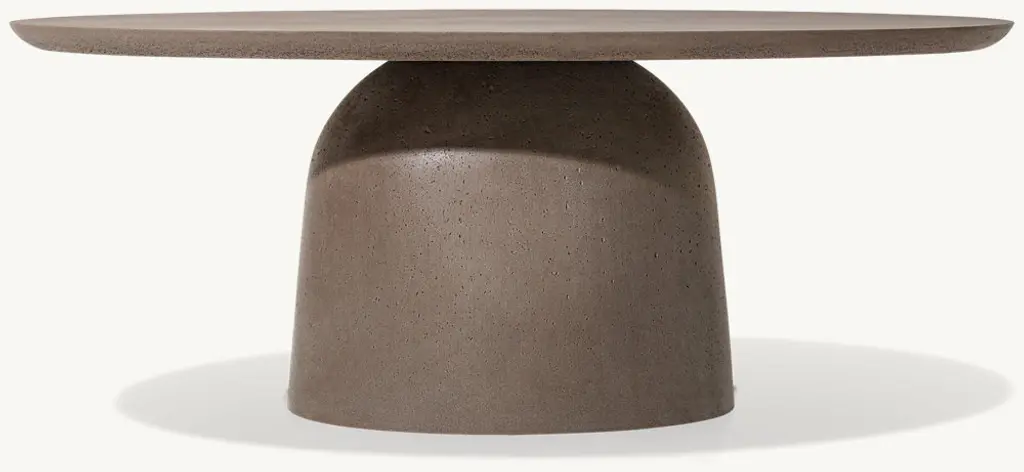 Two elliptical forms seem to balance, one atop the other, in a stunning sculptural silhouette by designer Ann Marie Vering. Echoing postmodern architecture, the bold coffee table is crafted from concrete using custom molds to shape the smooth contours and crisp surfaces of each piece. The geometric objects converge to create a dynamic tension and sense of movement.