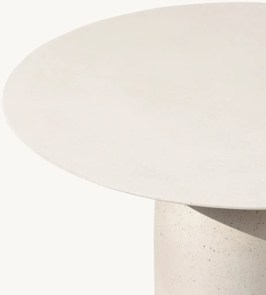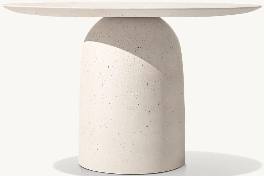 Two elliptical forms seem to balance, one atop the other, in a stunning sculptural silhouette by designer Ann Marie Vering. Echoing postmodern architecture, the bold dining table is crafted from concrete using custom molds to shape the smooth contours and crisp surfaces of each piece. The geometric objects converge to create a dynamic tension and sense of movement.