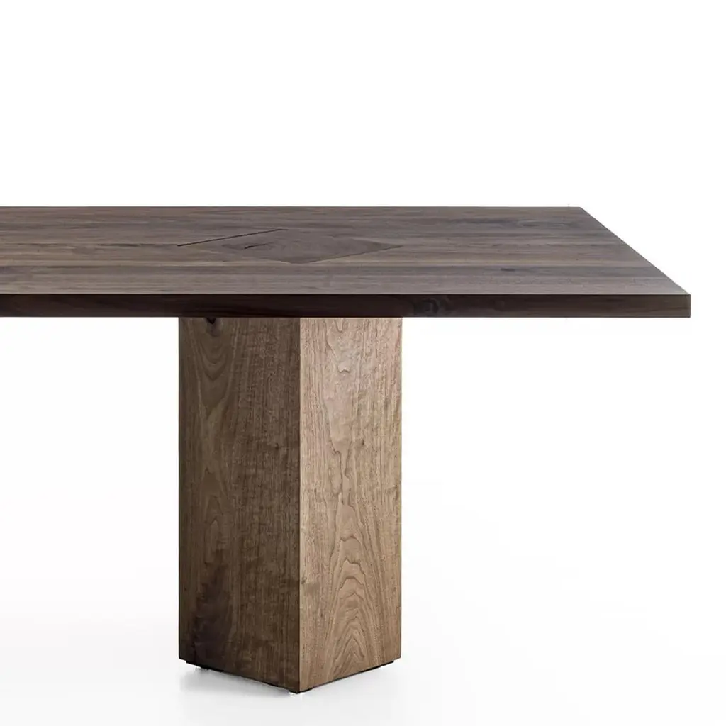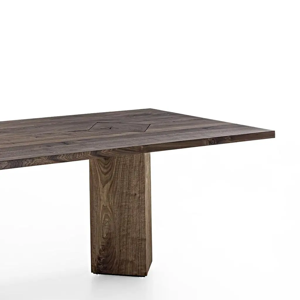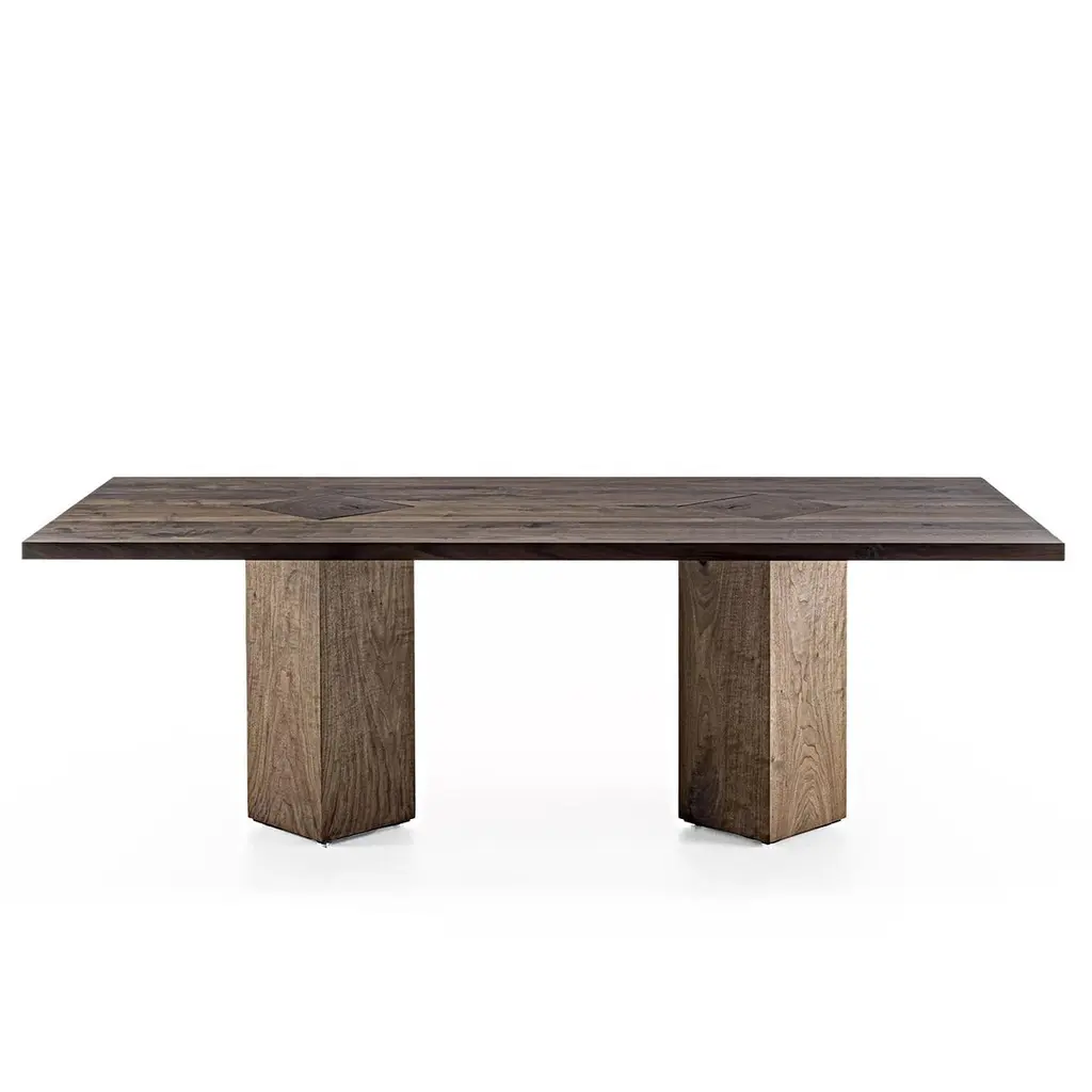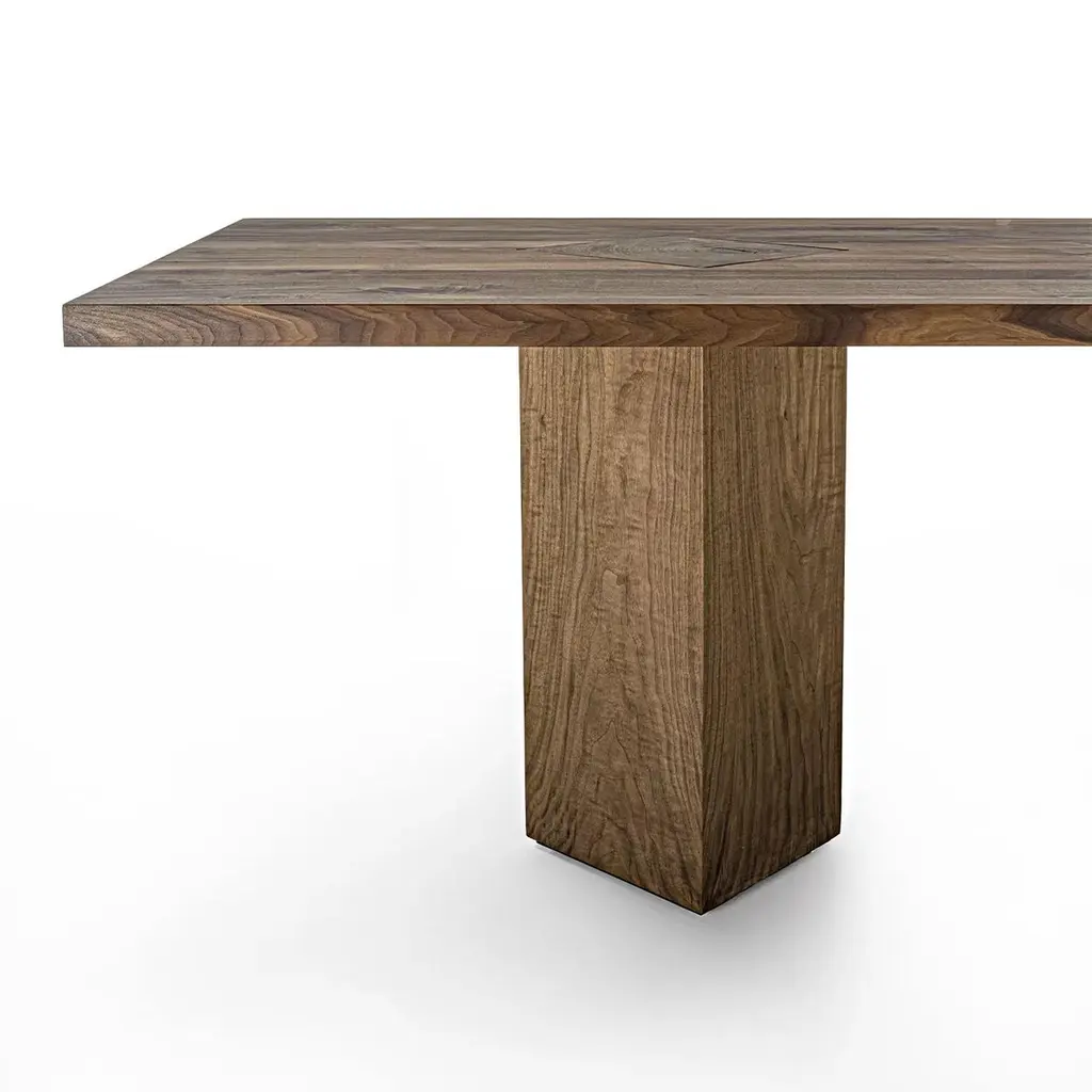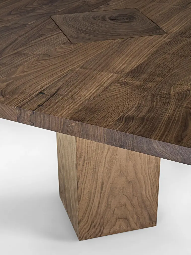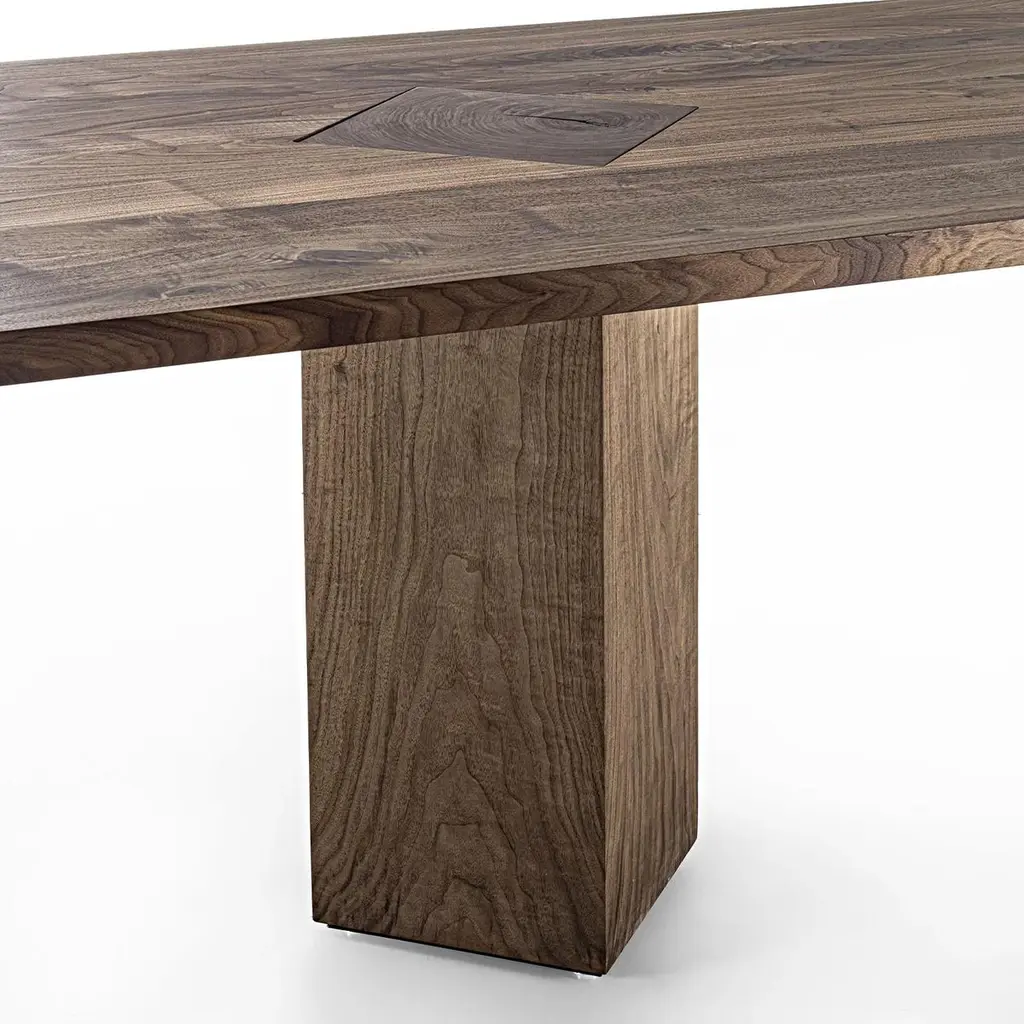 Dining Table Elma with all structure in solid walnut, table top madewith walnut glued slats and with 45° angles feet made from walnut tree trunks.Also available on request in solid oak wood.Also available on request in:L240xD100xH75,5, price: 13900,00€L260xD100xH75,5, price: 14900,00€L300xD110xH75,5, price: 18900,00€.
