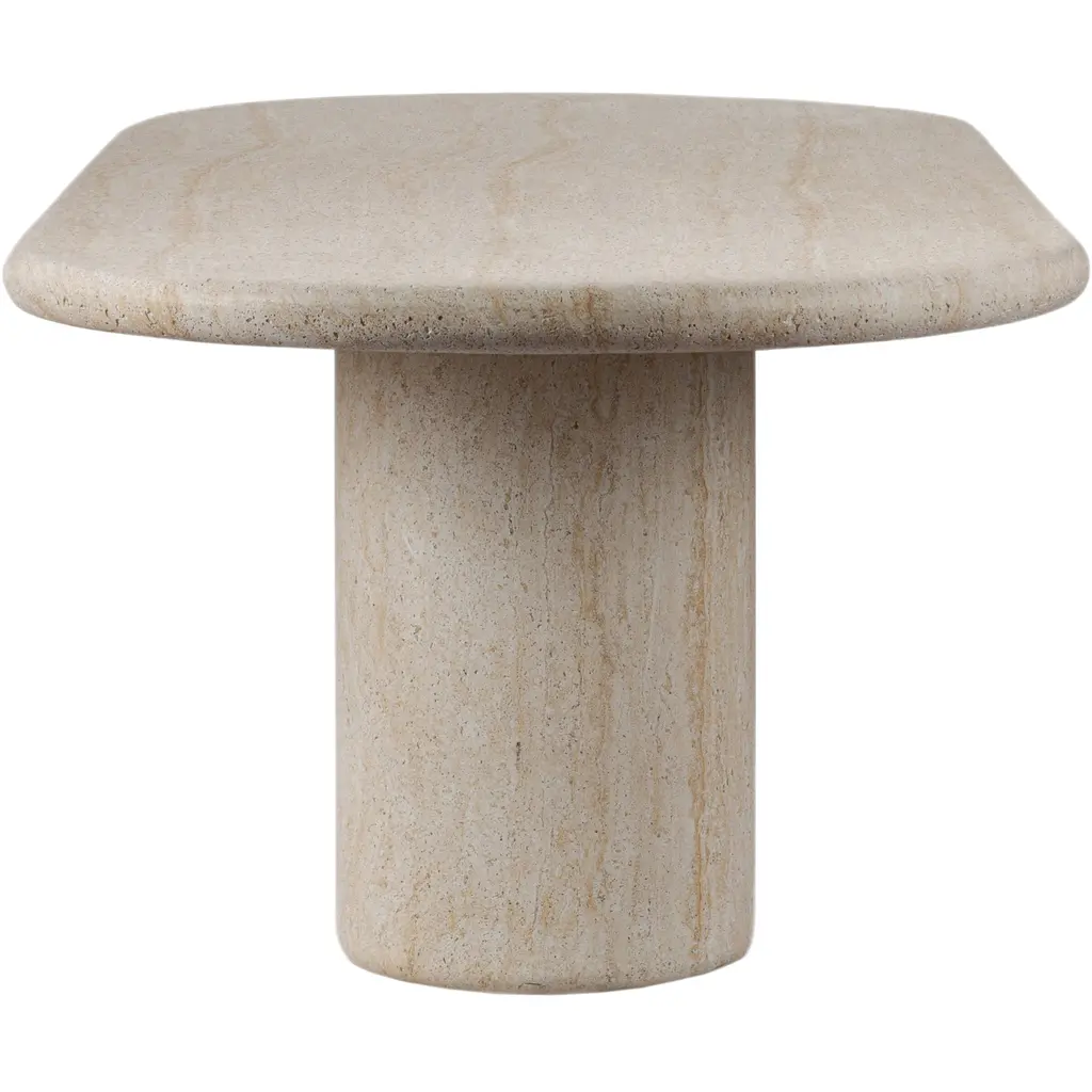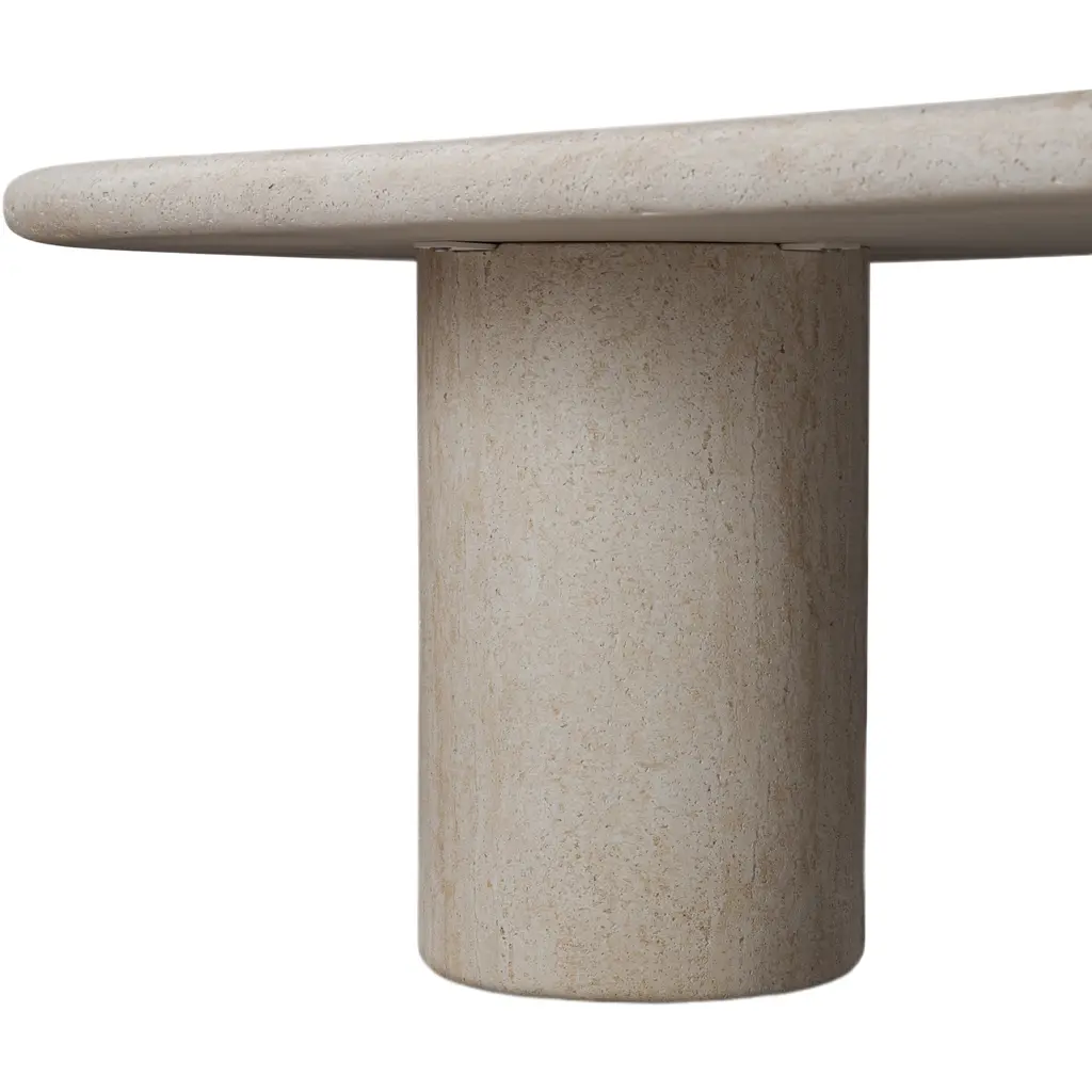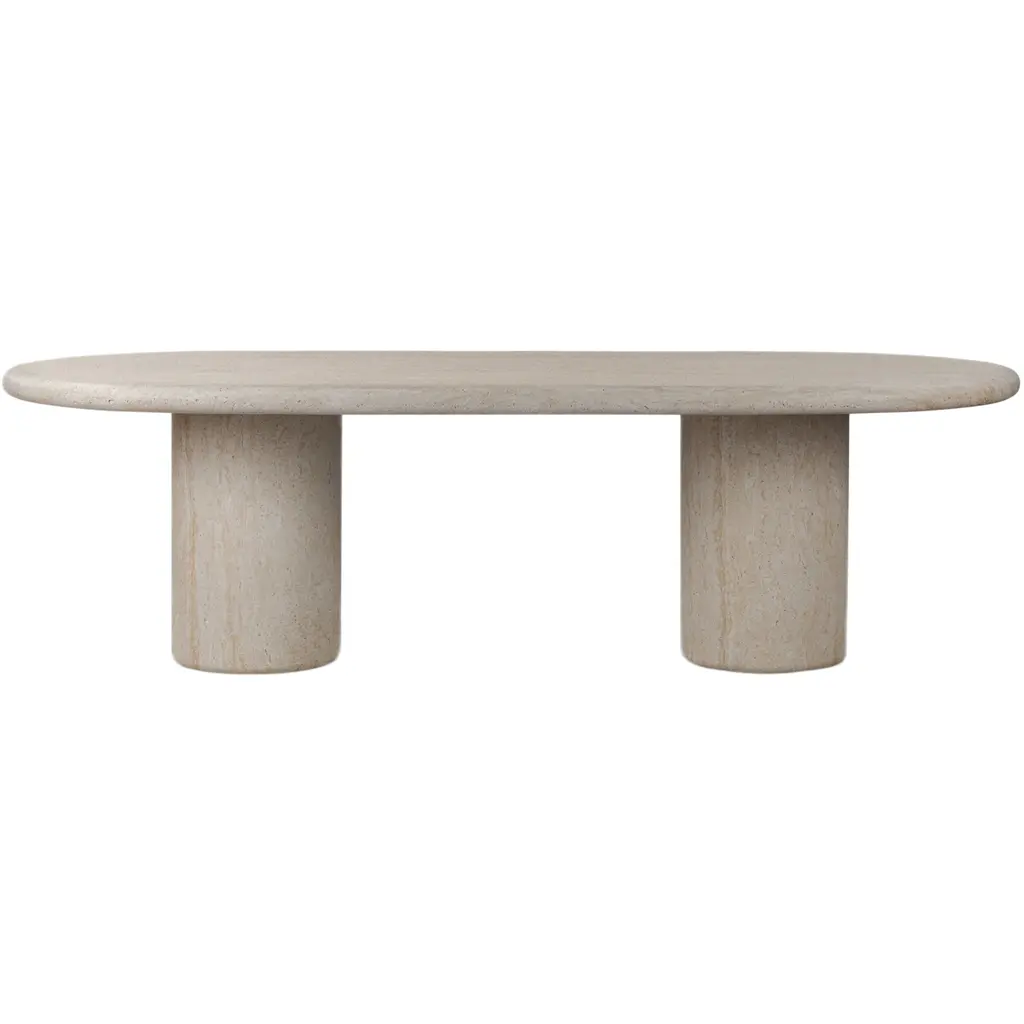 The Elro Outdoor Dining Table-102" is a masterpiece of design, featuring a simple double pedestal silhouette that allows the material to take center stage. Crafted with textured sand concrete, this table mimics the natural variance of stone, offering a unique marbled appearance to each piece. It's a stunning addition to any outdoor space, providing both functionality and aesthetic appeal. Remember to cover or store it indoors during inclement weather and when not in use to maintain its beauty.