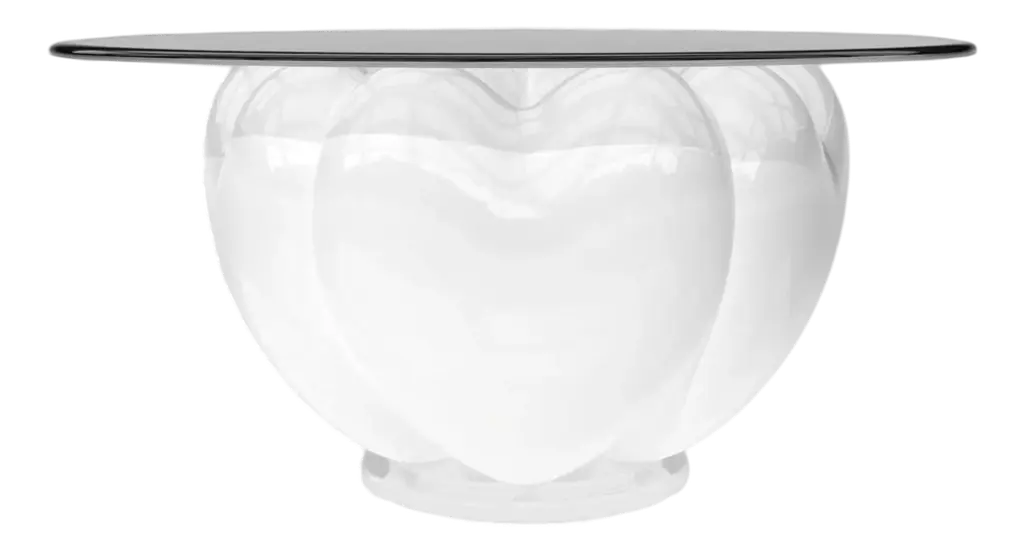 Eje-Design celebrates the universal symbol of love. This sculptural and symbolic creation from the Eje-Design house, as refined as it is poetic, aspires to a world of beauty, love and originality. Made up of 3 intertwined hearts, the foot of this table is a real sculpture that is both distinguished and unusual. Dressed in its Arctic White lacquered color developed by the Rolls Royce brand, this side console will captivate you. Limited Series: 489 pieces Designer : Ema Dimensions without the glass top : Height: 73cm; diameter: 93,7cm Dimensions of the glass top : Height: 1.8cm; diameter: 160cm Materials : This console is made from a block of epoxy resin. In a world where mass production predominates, we have chosen to focus on craftsmanship and quality. Each creation we offer is made to order by our passionate and dedicated employees, thus ensuring careful attention to every detail. For each order, a production time of approximately 3 months is expected. This may seem long, but it is a guarantee of quality. Unlike mass-produced products, our creations require time to be made with the level of care and passion that we claim. As each product is handmade by our artisans, slight variations in rendering may exist between the same product of the same color. The rendering of the photos and illustrations alaso depends on the settings and characteristics of your screen. The actual rendering of the piece will therefore be different in reality. Consequently, the textures, colors, shadows, flashes, brightness and renderings would therefore not be contractual. Signed by Maker,Labeled by Maker,Stamped by Maker,Imprinted by Maker,Labeled with Country of Origin,Numbered