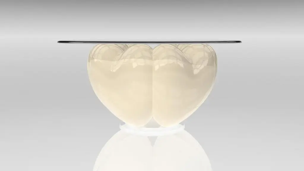 Eje-Design celebrates the universal symbol of love. This sculptural and symbolic creation from the Eje-Design house, as refined as it is poetic, aspires to a world of beauty, love and originality. Made up of 5 intertwined hearts, the foot of this table is a real sculpture that is both distinguished and unusual. Dressed in its Porcelaine Skin lacquered color developed by the Rolls Royce brand, this side console will captivate you. Limited Series: 489 pieces Designer : Ema Dimensions without the glass top : Height: 73cm; diameter: 108,9cm Dimensions of the glass top : Height: 1.8cm; diameter: 160cm Materials : This console is made from a block of epoxy resin. In a world where mass production predominates, we have chosen to focus on craftsmanship and quality. Each creation we offer is made to order by our passionate and dedicated employees, thus ensuring careful attention to every detail. For each order, a production time of approximately 3 months is expected. This may seem long, but it is a guarantee of quality. Unlike mass-produced products, our creations require time to be made with the level of care and passion that we claim. As each product is handmade by our artisans, slight variations in rendering may exist between the same product of the same color. The rendering of the photos and illustrations alaso depends on the settings and characteristics of your screen. The actual rendering of the piece will therefore be different in reality. Consequently, the textures, colors, shadows, flashes, brightness and renderings would therefore not be contractual. Signed by Maker,Labeled by Maker,Stamped by Maker,Imprinted by Maker,Labeled with Country of Origin,Numbered