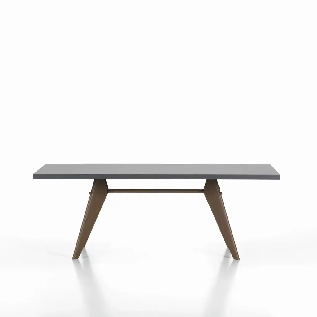 The aesthetic appearance of Jean Prouve's EM Table adheres to structural principles, illustrating the flow of forces and stresses in its construction. It comes in a range of sizes with table tops in premium solid wood or HPL laminate in a choice of colours. Tops measuring 2000 or 2400 mm in length are also available in oak veneer. Thanks to this wide selection, the ideal EM Table can be found for every dining room.