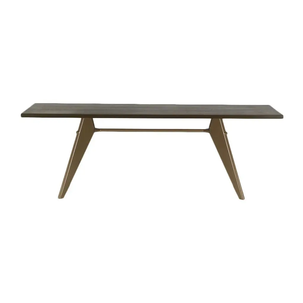 The aesthetic appearance of Jean Prouve's EM Table adheres to structural principles, illustrating the flow of forces and stresses in its construction. It is comes in a range of sizes with table tops in premium solid wood or HPL laminate in a choice of colors. Tops measuring 2000 or 2400 mm in length are also available in oak veneer. Thanks to this wide selection, the ideal EM Table can be found for every dining room.