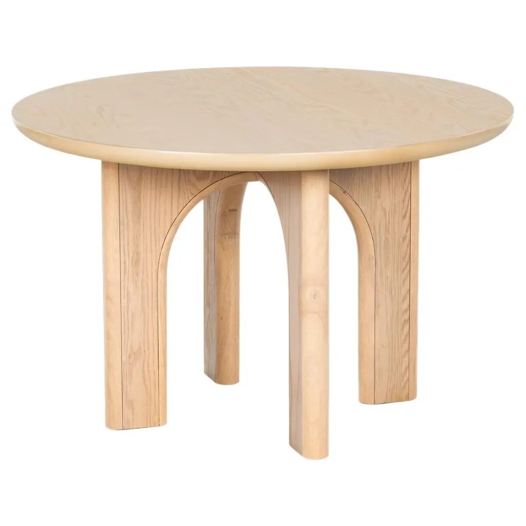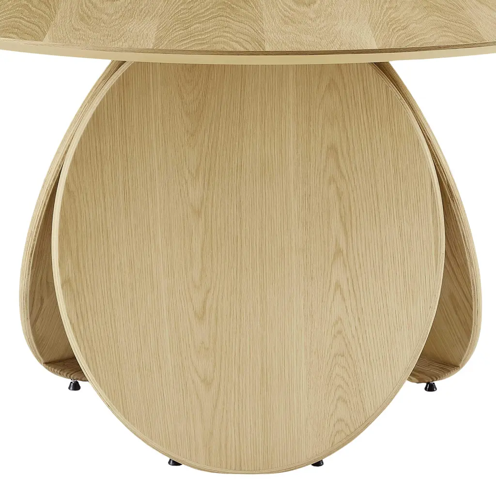 The Emil Oak Round Dining Table is truly unique and serves as the perfect, simple yet captivating addition to your dining room. Expertly crafted with oak wood and manufactured wood, Emil is designed to maintain its beauty through all your family dinners and dinner parties. The three-disc legs not only impart a modern aesthetic but also ensure stability.