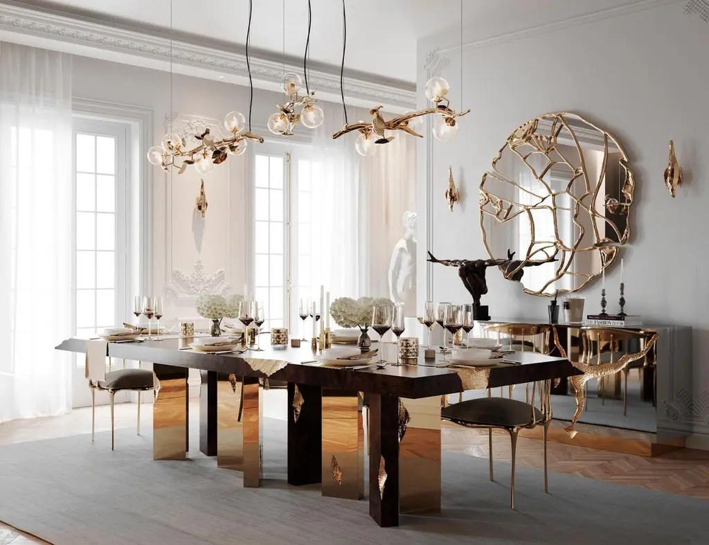 Empire Dining Table - Hand-Crafted Wood Brass & Veneer - Boca Do Lobo
