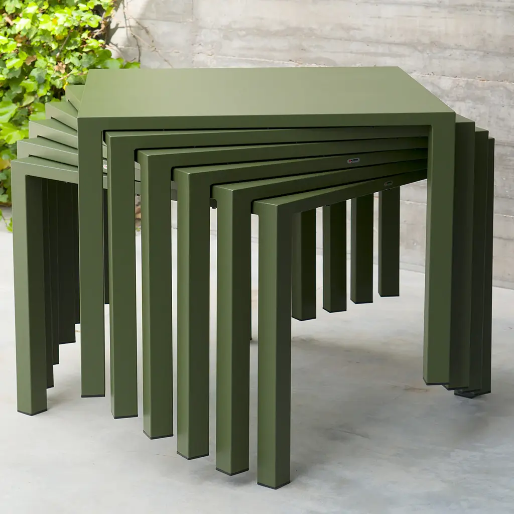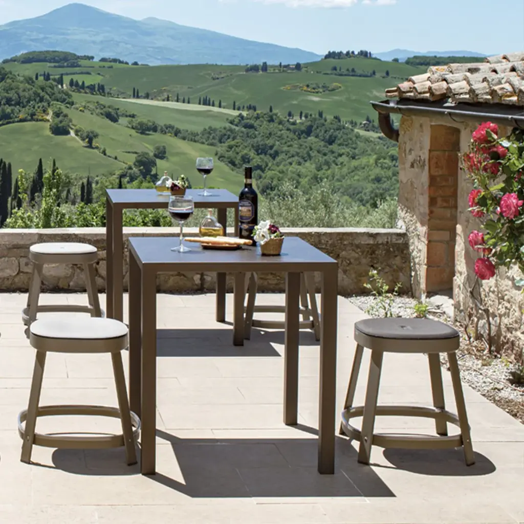 Distinctive characteristics of the Nova collection are it's small size and functionality. Due to the special technology used for the materials in the tabletops, Nova tables stabilize automatically on any type of flooring. The collection is completed with square and rectangle dining tables with clean lines that enhance the unique design of the chairs. Deeply dedicated to the 100% Made-in-Italy production philosophy, Emu has been manufacturing some of the world's finest domestic and commercial furniture since 1951. Pioneering in the technical know-how for metal processing and protection, they create pieces that allow their customers to relax in an Italian-style outdoor living space. They are dedicated to innovation, quality, sustainability, and international orientation.