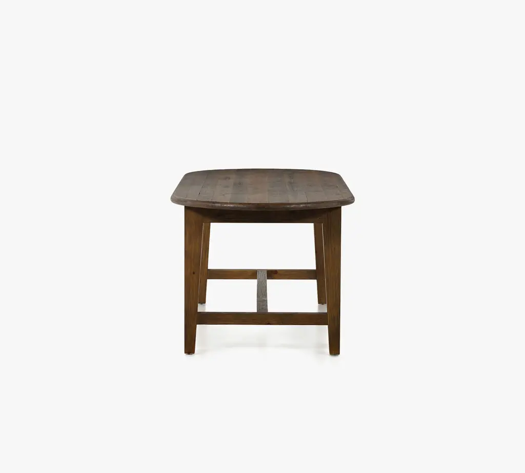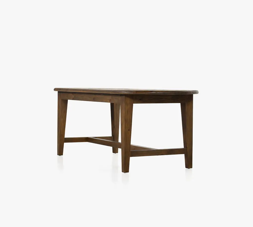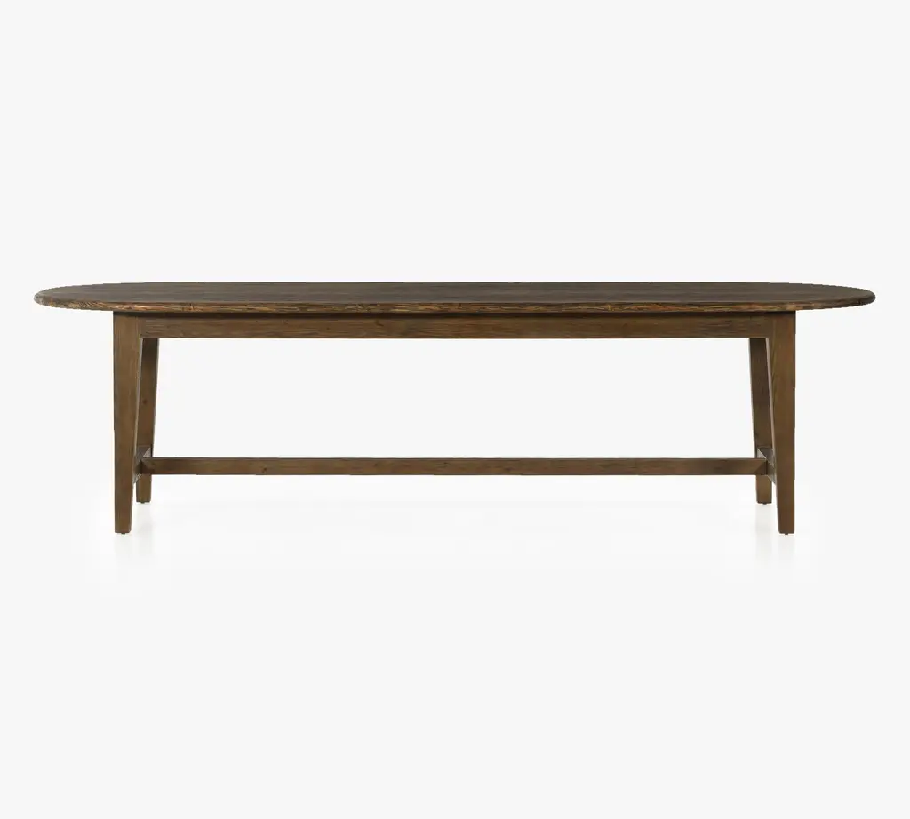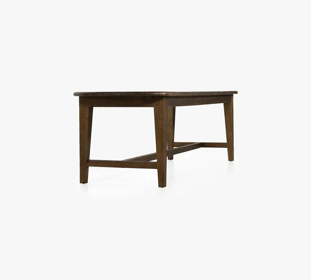 Crafted from solid pine, our dining table brings a relaxed farmhouse feel to your home. The unadorned silhouette features tapered legs and an expansive oval top that is complemented by a stretcher and apron for a traditional touch. Perfect for a country home but streamlined enough for a contemporary interior.