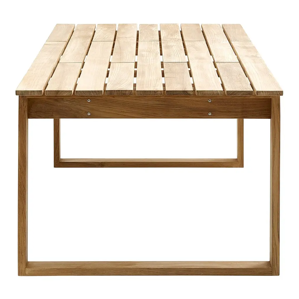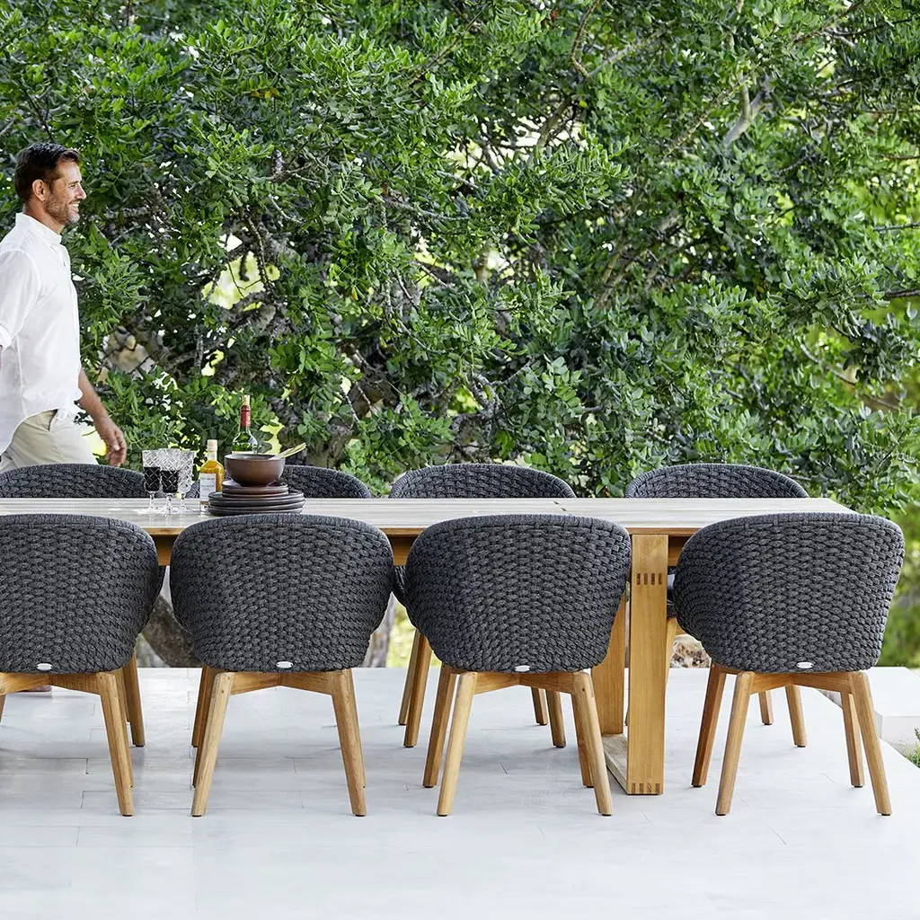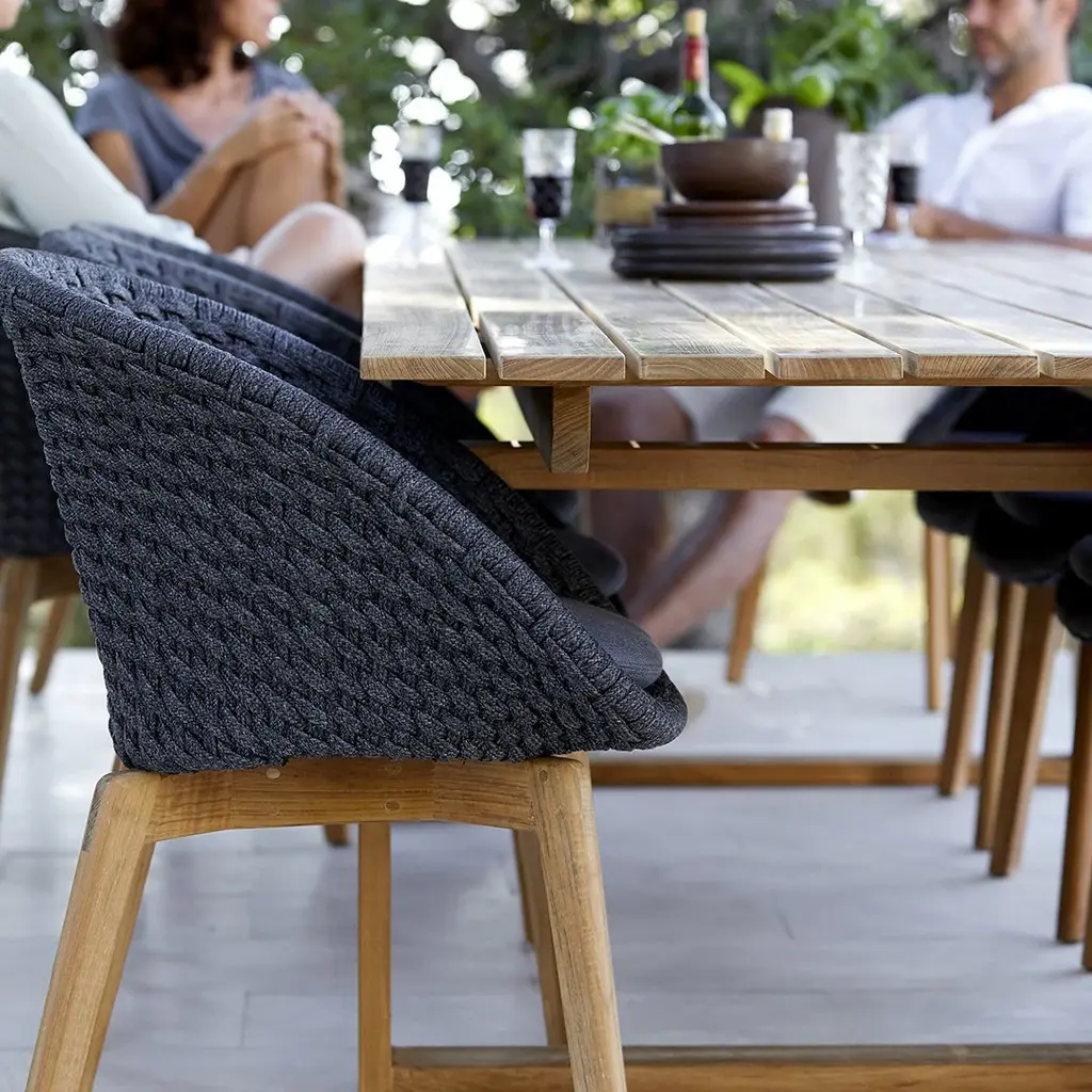 Endless is a beautiful range of certified teak tables designed by Foersom + Hiort-Lorenzen MDD. The table is made of rows of teak planks, providing an endless look. The design of the Endless table is timeless with the warmth of the teak wood, ensuring a durable and classic table. The massive wooden planks provide a solid and refined look, with beautiful endings and a smooth surface. Endless is a table which can match different needs, as the table is designed both as a rectangular and a round table in various sizes. The Endless table is manufactured in certified teak, providing a natural look and a long-lasting table. Teak is an oil-rich wood, which is ideal for outdoor use. The wood acquires a natural silver-grey patina with time. However, it can also retain its natural glow through the application of teak oil. Cane-line teak is approved and cultivated according to SVLK certification system.