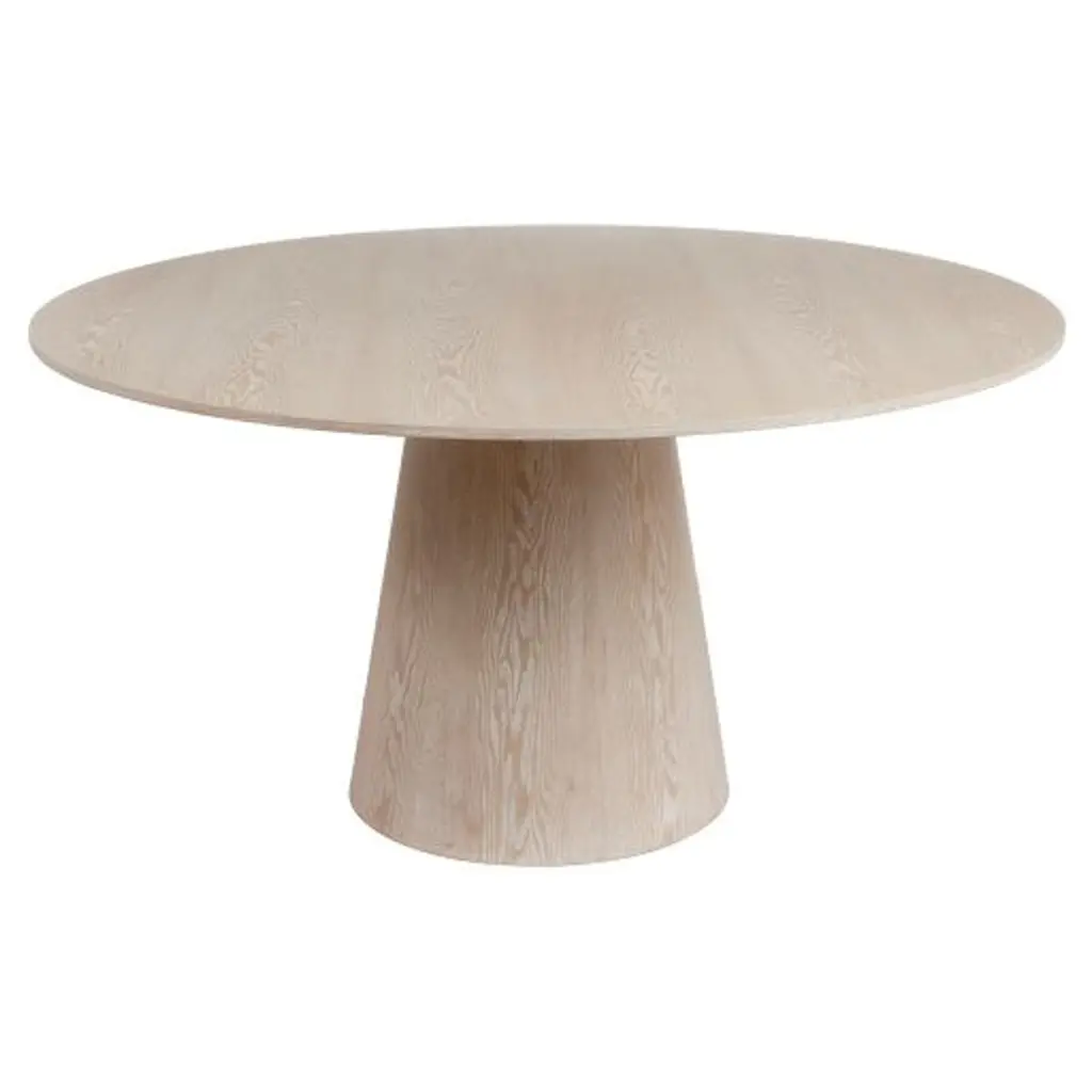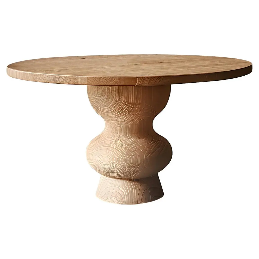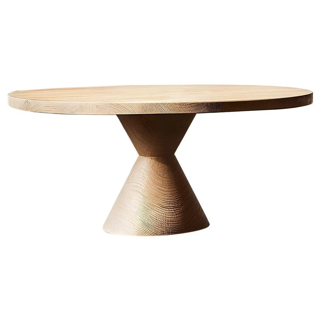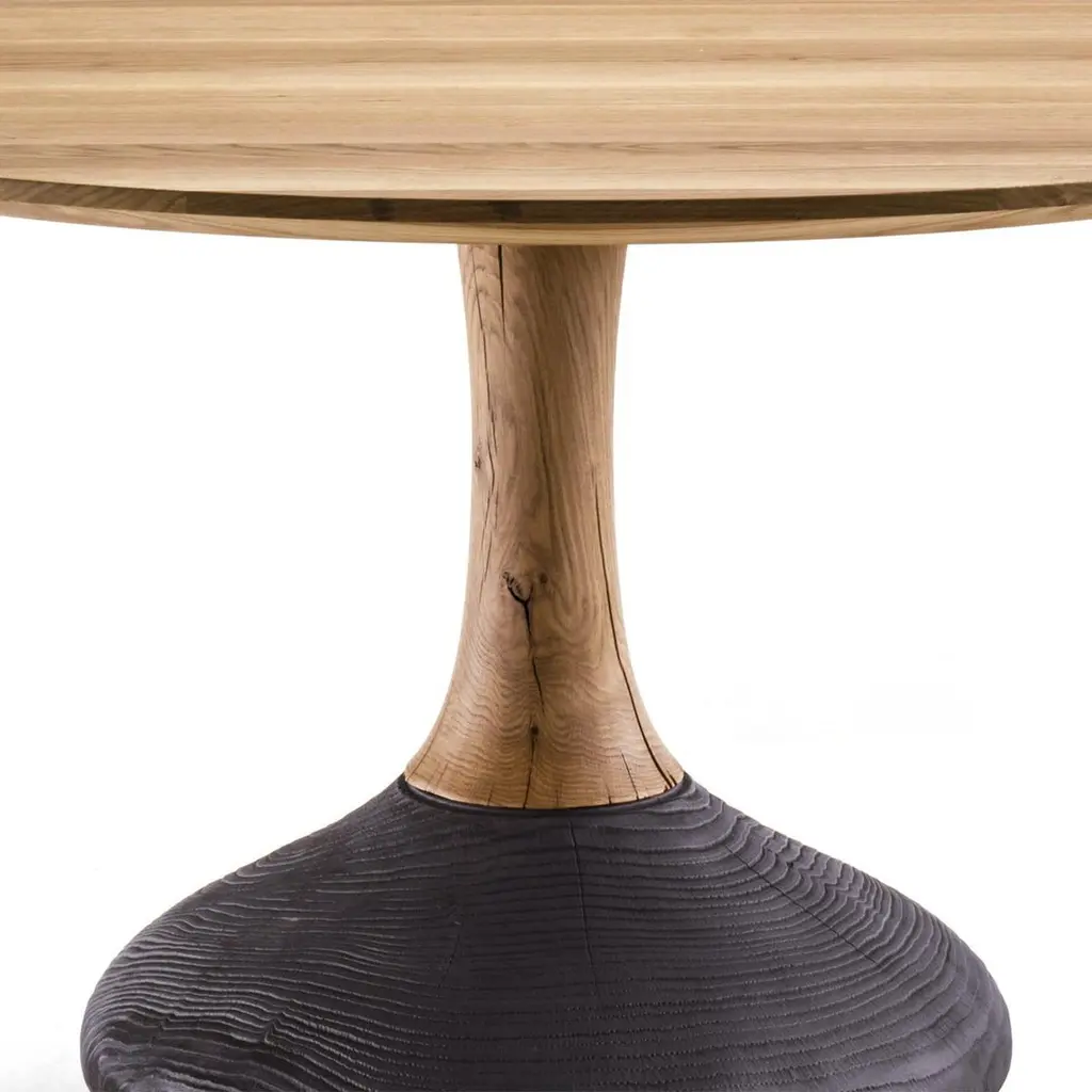 Dining table Ennio round with top made of solid oakglued slats, with central leg in solid oak and with basein solid cedar in burnt finish.Available on request in:Diameter 80 x Height 74,5cm, price: 6900,00€Diameter 100 x Height 74,5cm, price: 8700,00€Diameter 120 x Height 74,5cm, price: 9400,00€Diameter 130 x Height 74,5cm, price: 9900,00€Diameter 160 x Height 74,5cm, price: 11900,00€Also available with top and central leg in solid walnut woodwith base in solid cedar wood in burnt finish, including up-charge,on request.