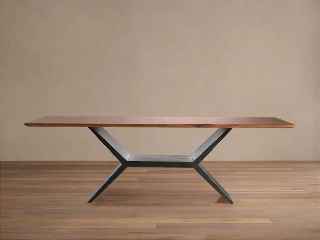 The Enzo Dining Table brings a wealth of bold modern-contemporary style to your dining room. The natural wood tones of the walnut-veneered tabletop contrast strikingly with the solid beech legs, which are finished to look like metal. These uniquely angled table legs create a striking array of geometric shapes, and add significant visual interest to any dining room. Made to last, this high-quality piece is sure to serve up style in your home for years to come.