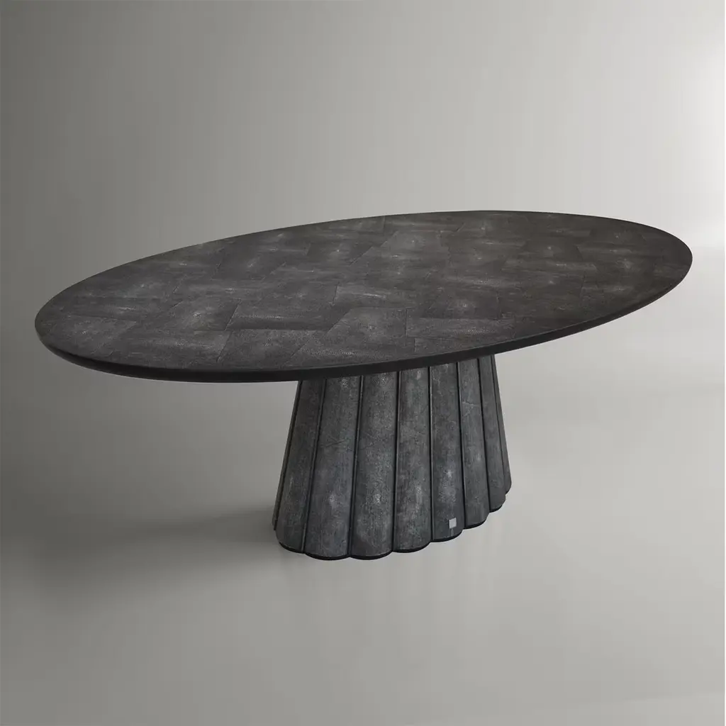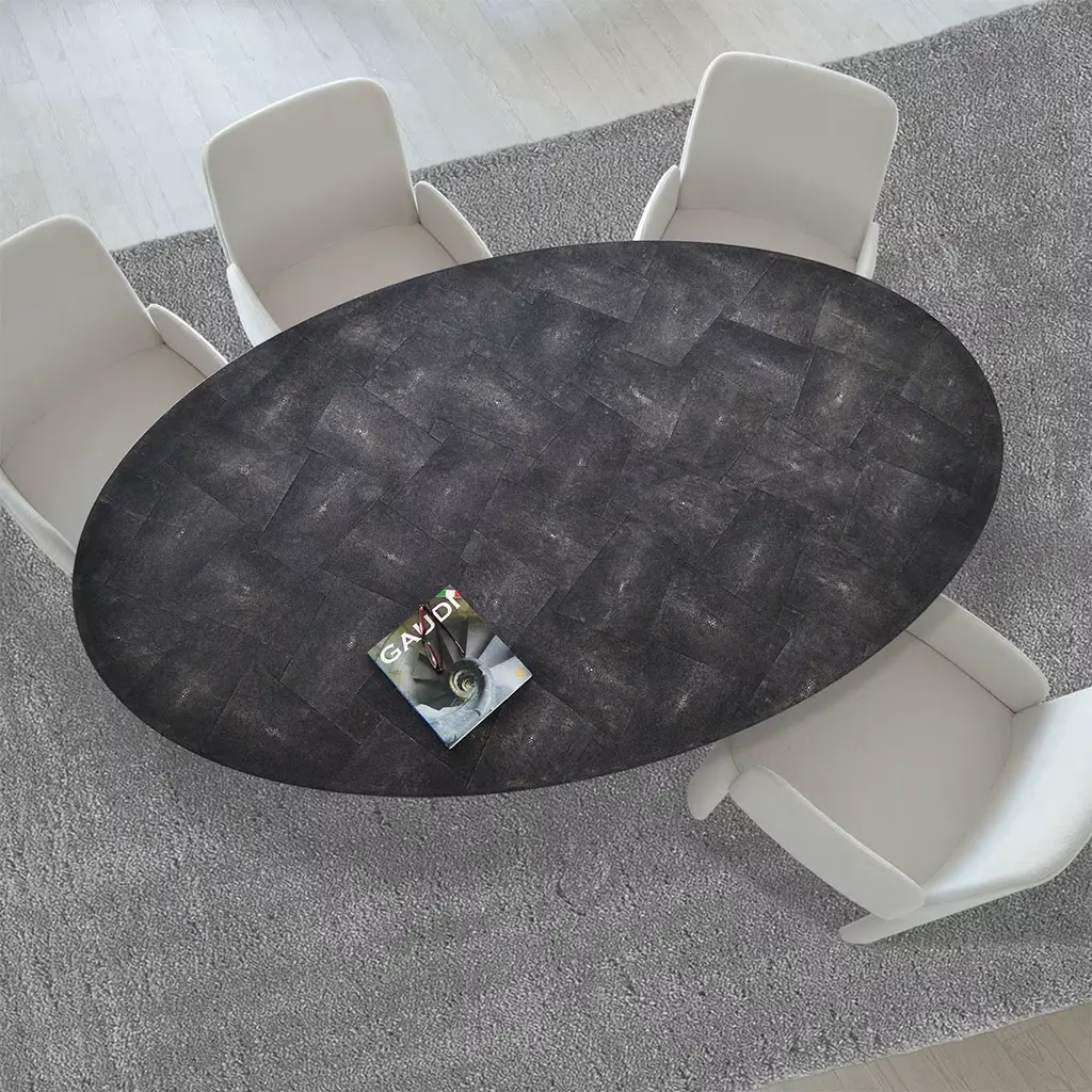 Eos Oval Black Galuchat Leather Dining Table