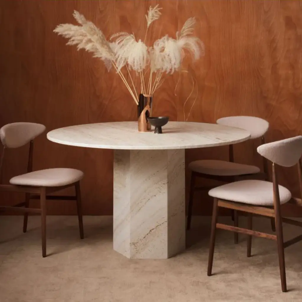 Discover the timeless beauty of the Epic Dining Table by GamFratesi for GUBI. This Italian-crafted table, inspired by Greek and Roman architecture, features a monolithic travertine stone form that celebrates the natural beauty through its veins and textures. A stunning centerpiece in any dining room, this unique table seats up to five people comfortably. Highlights