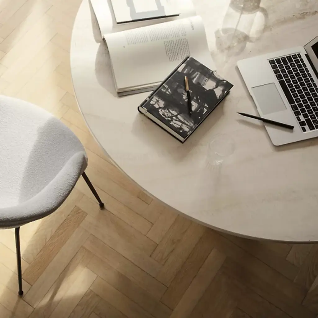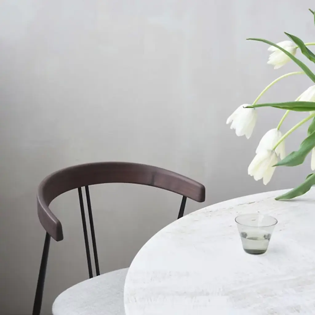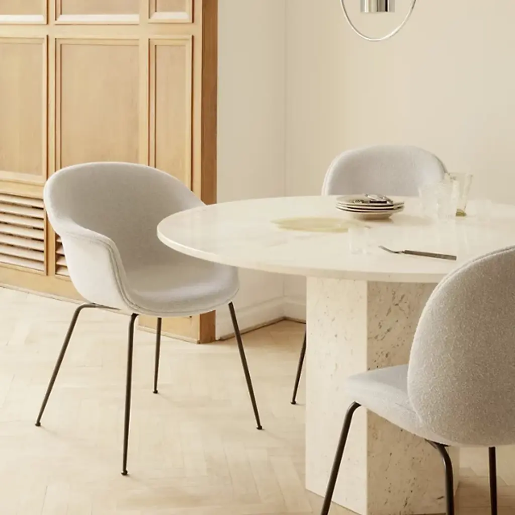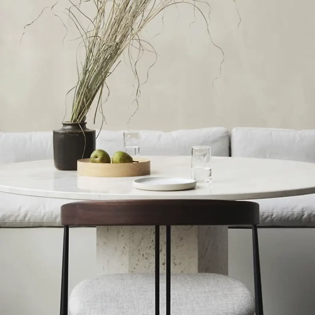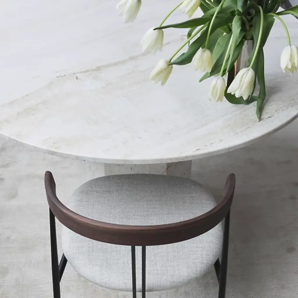 The Epic Round Dining Table, comes from the epic poems of the times these structures were built. Designed by GamFratesi for GUBI, is a sculptural, conceptual furniture piece inspired by the monolithic forms of ancient Greek and Roman architecture. GamFratesi was inspired by the 1970s revival of travertine in Southern Europe and today presents the material in a bold form. The tables are created in Italy with a celebration of the stone’s natural veins, texture, and patina. Each table is therefore unique, and with every use new details will be discovered.