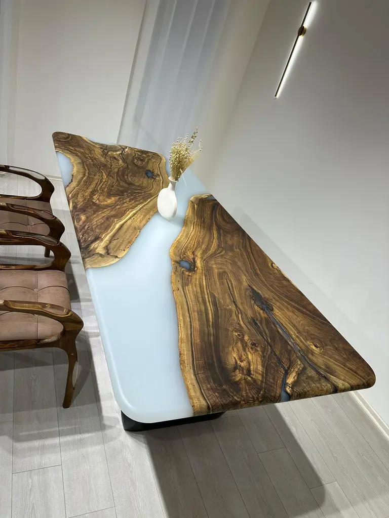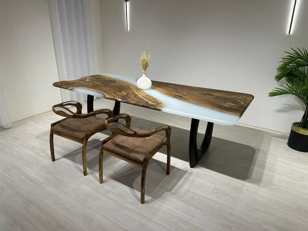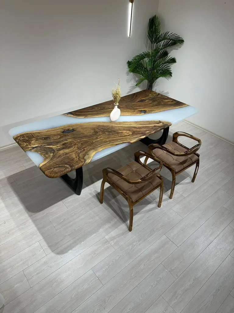 RIVER EPOXY TABLEPRE-NOTE: CUSTOM SIZES ARE AVAILABLE!Type of Wood: HackberryDimensions: 80" x 40"Leg Model: Wood & EpoxyCustomizable: Available!Production Time: 3 WeeksShipping Cost: Free!Package Method: Wooden PalletRiver dining table is made of walnut wood. Our wood river tables are crafted by skilled artisans. Whether you seek a modern touch or a natural feel, our tables offer unique options to suit any style.We customize all of our furnitures (dining tables, coffee tables, tv units, consoles etc..) in terms of epoxy / glass colour, type of wood, finishes etc..Before start the production process, we send the pics of the wood options within a frame. If you like the shape of the slabs, then we start the production process.If you don't like the legs, you may also change them!We deliver our tables by DHL. It generally takes 5-9 days.