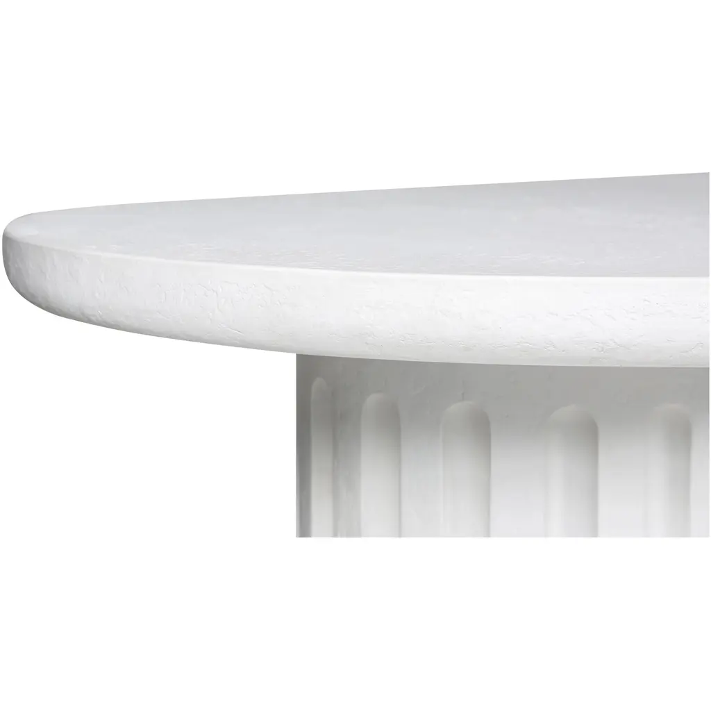 A striking interplay of shapes, the Eris outdoor dining table embraces round forms with a column-like fluted side. The rough concrete texture adds depth and complexity to an otherwise simplistic form, making it a statement piece suitable indoors and out. Exceptionally composed of Glass Fiber Reinforced Concrete (a fusion of cement, glass fiber, and Styrofoam), this table offers unique aesthetics while maintaining its beauty.