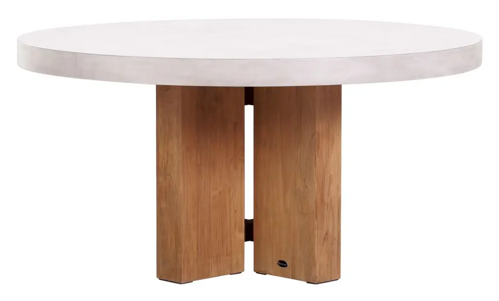 Ethel Teak Outdoor 60" Dining Table, White Concrete