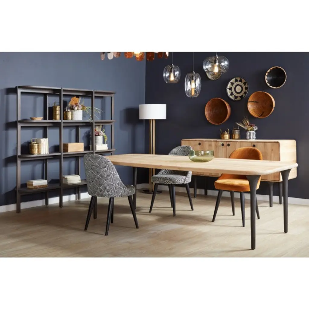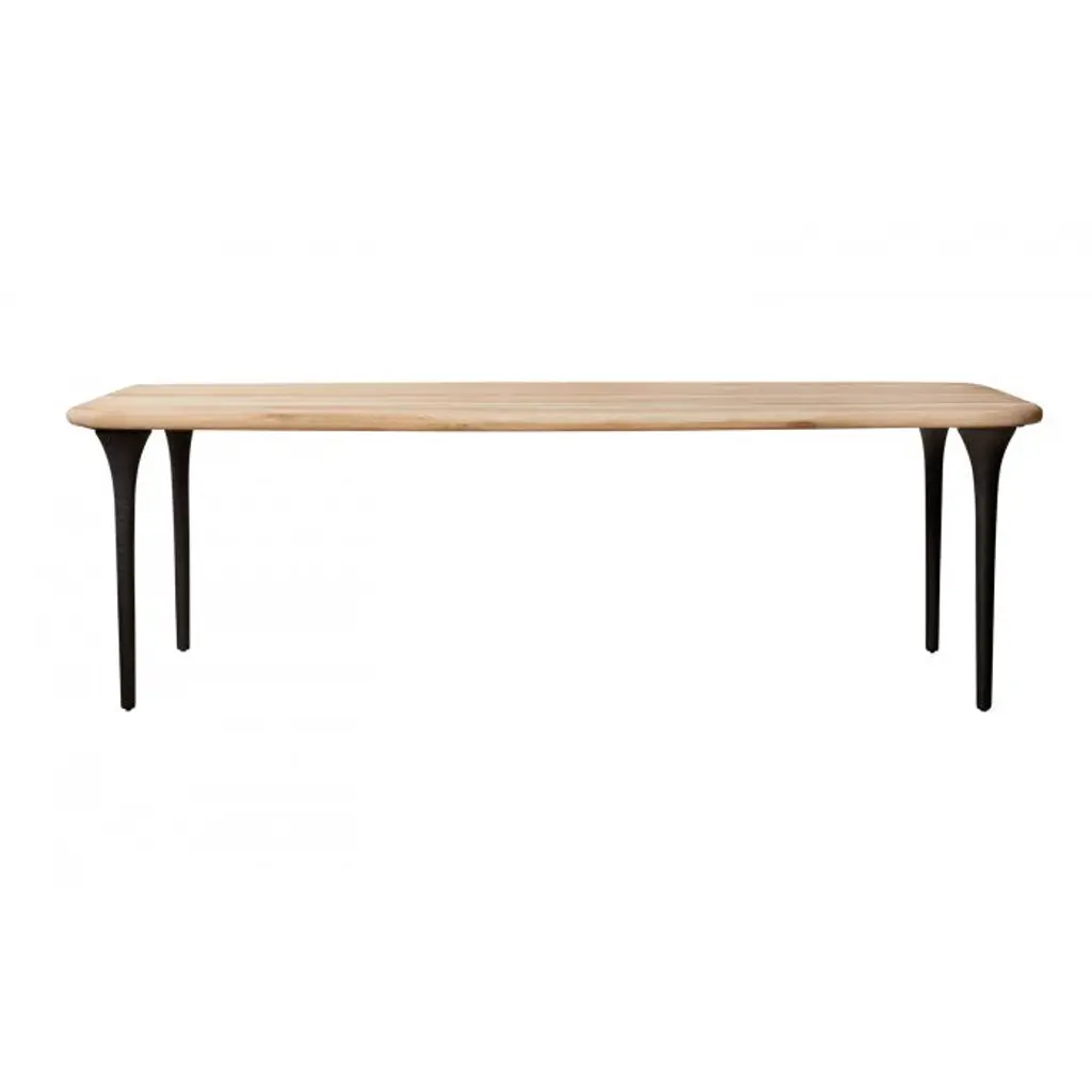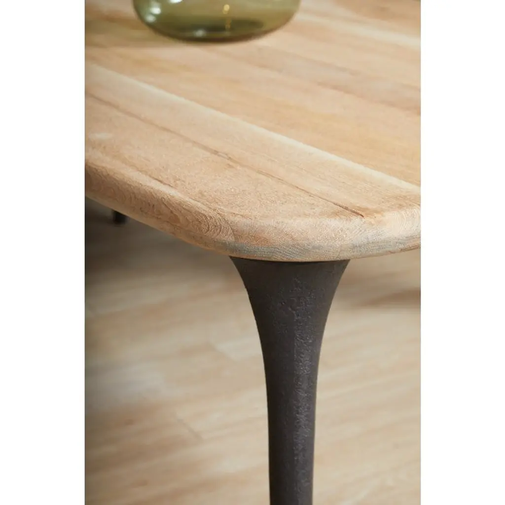 Handcrafted in solid white Oak table with a soft edge. Its light textured finish contrasts with the cast iron legs in a black oil finish create an industrial modern look.
