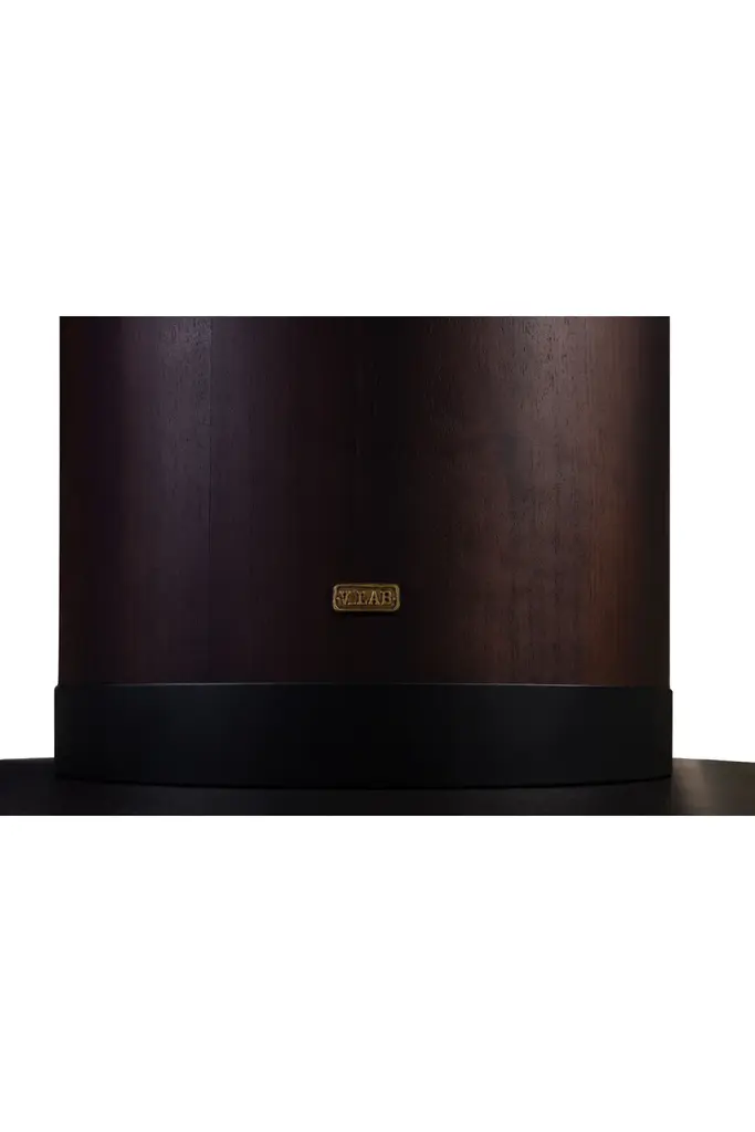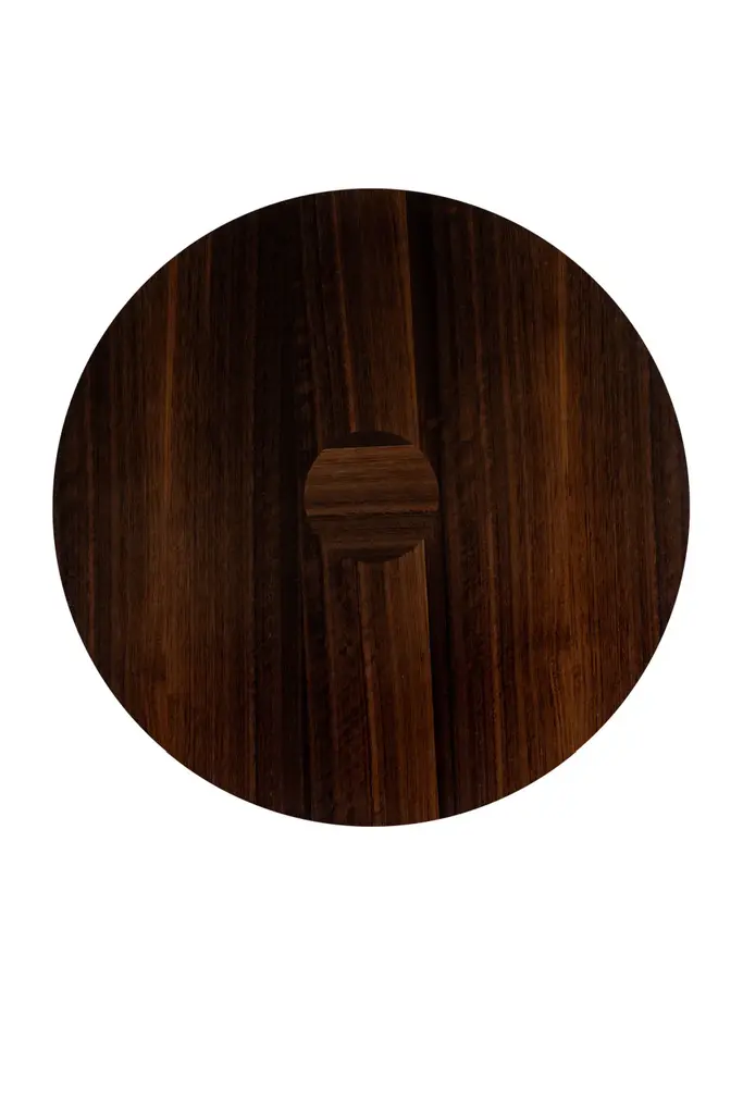 Embrace the innate allure of wood with the Joburg Dining Table by Versmissen. Crafted from smoked eucalyptus veneer paired with a sleek black steel footplate, it effortlessly combines organic and modern aesthetics. Its cylindrical pedestal base exudes contemporary charm while ensuring stability. Turn every meal into a sophisticated and heartwarming experience.