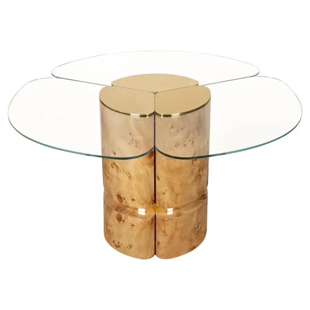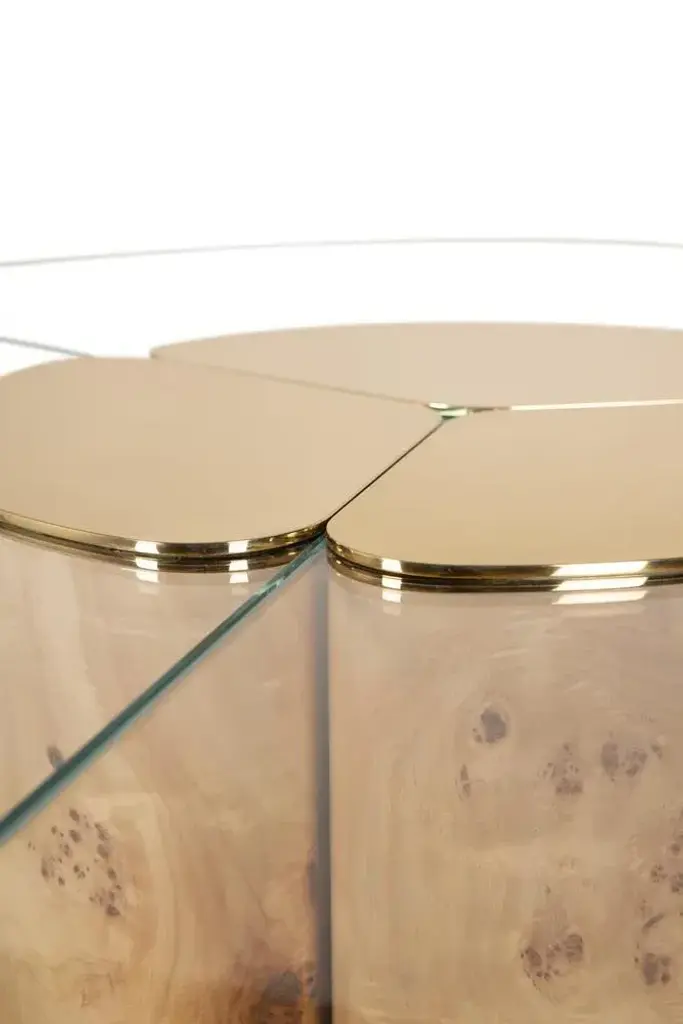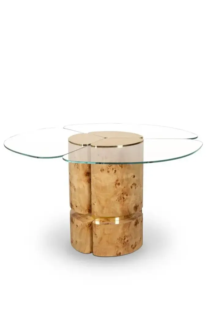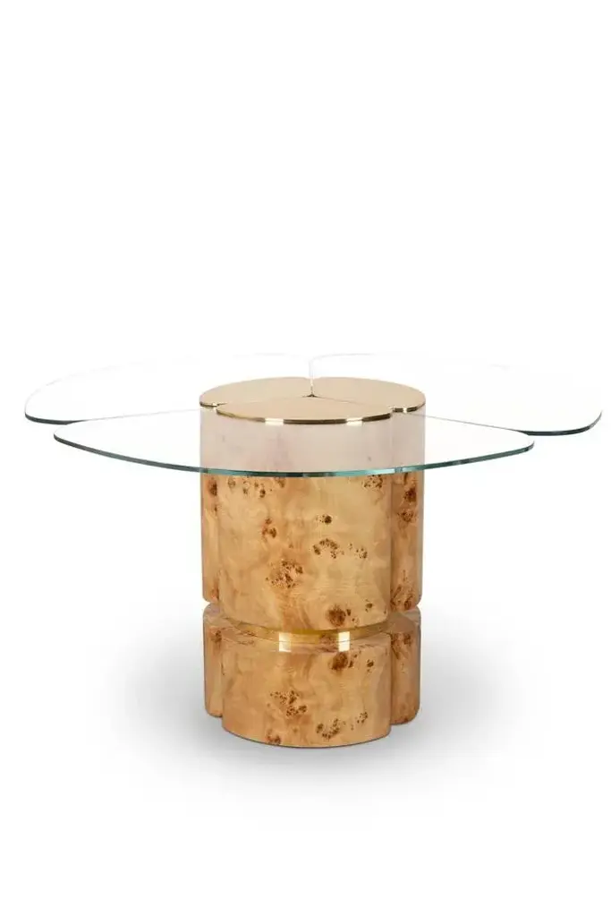 Euphoria Dining Table by Memoir Essence Dimensions: D 140 x W 140 x H 76 cm. Materials: Polished brass, lacquer and glass.