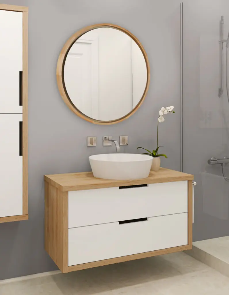 Evans Framed Round Wall Mirror, Natural 30 Diameter