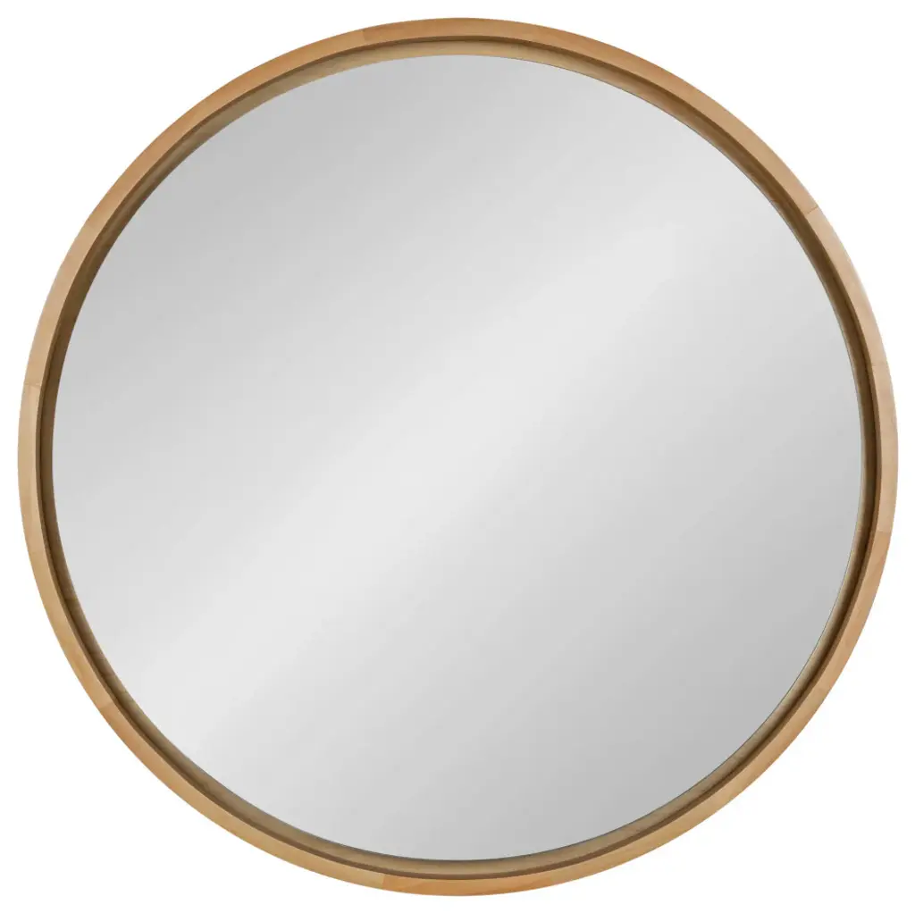 The Evans wall mirror adds a lovely, boho-chic accent to any room of your home. The Evans mirror has a robust, solid poplar wood frame with a light natural finish, creating a functional, premium accent that''s perfect for any mid-century modern living or office space. The interior glass of this mirror floats within the frame, providing an eye-catching, unique design detail and statement. The Evans mirror features a 30-inch diameter, providing the perfect broad accent to highlight over a fireplace or console table. Hanging a mirror in your home spreads more light throughout the area, creating more depth and dimension even in small spaces. It''s perfect for any modern living room, bedroom, entryway, dining room, or office. You could also use this functional wall accent as a bathroom mirror above a vanity or sink. The Evans wall mirror makes for a lovely focal point on its own, or you can display it in multiples for a grand, mid-century wall display. This wall mirror hangs in a matter of seconds with convenient metal D-ring hangers securely attached to the back.• MID-CENTURY DESIGN: Indulge your inner boho-chic interior designer with the trendy round shape and cozy, light natural wood finish• QUALITY MATERIALS: The frame of the Evans wall mirror has a robust poplar wood construction built with resiliency to ensure years of decorative display• LARGE SIZE: This accent mirror has a 30-inch diameter to create a large statement piece for any entryway, living room, bedroom, bathroom, entryway, or office• CREATE A WALL DISPLAY: Hang the Evans wall mirror on its own as an eye-catching focal point, or you can hang it in multiples for a robust wall display• EASY TO HANG: This mirror hangs in a matter of seconds with convenient metal D-ring hangers attached to the back