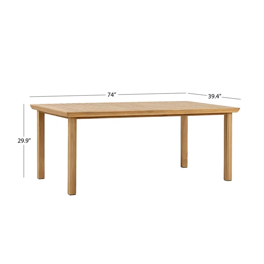 Everlee 74" Teak Outdoor Rectangle Dining Table