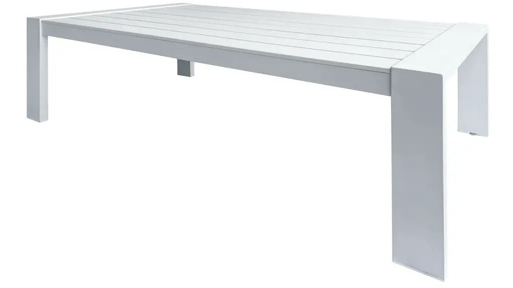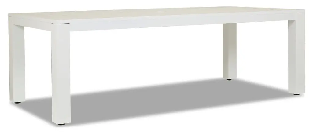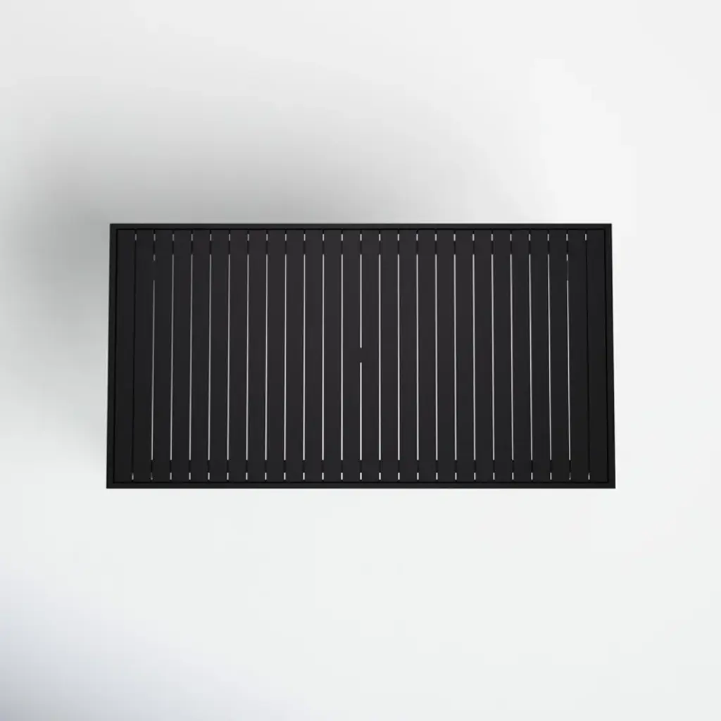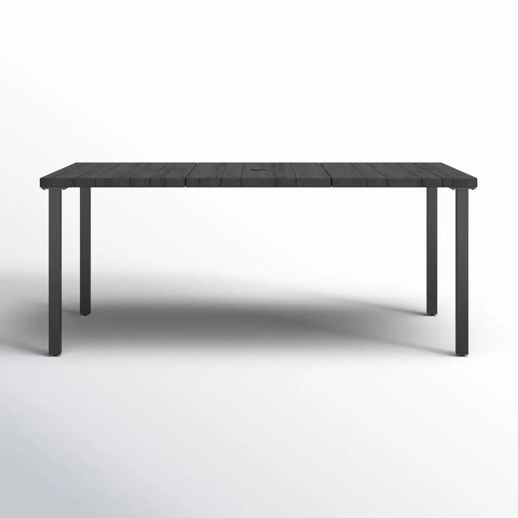 Simple and straightforward, our outdoor dining table makes alfresco dining easy. A sleek black metal frame pairs all-weather durability with a rectangular, slatted tabletop, which is perfect for quick drying after rain showers. It seats six people comfortably, and its understated design lets you mix and match with your preferred dining chairs (sold separately).
