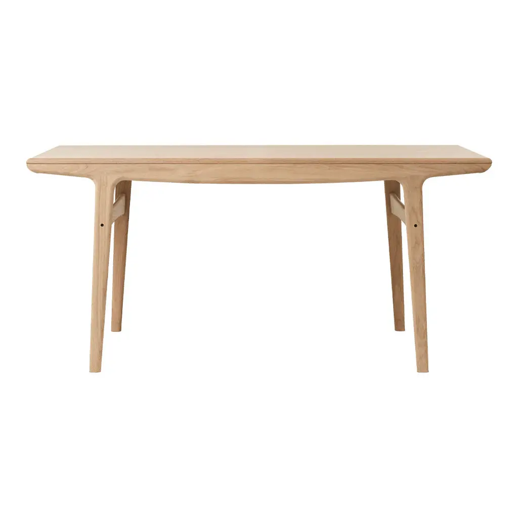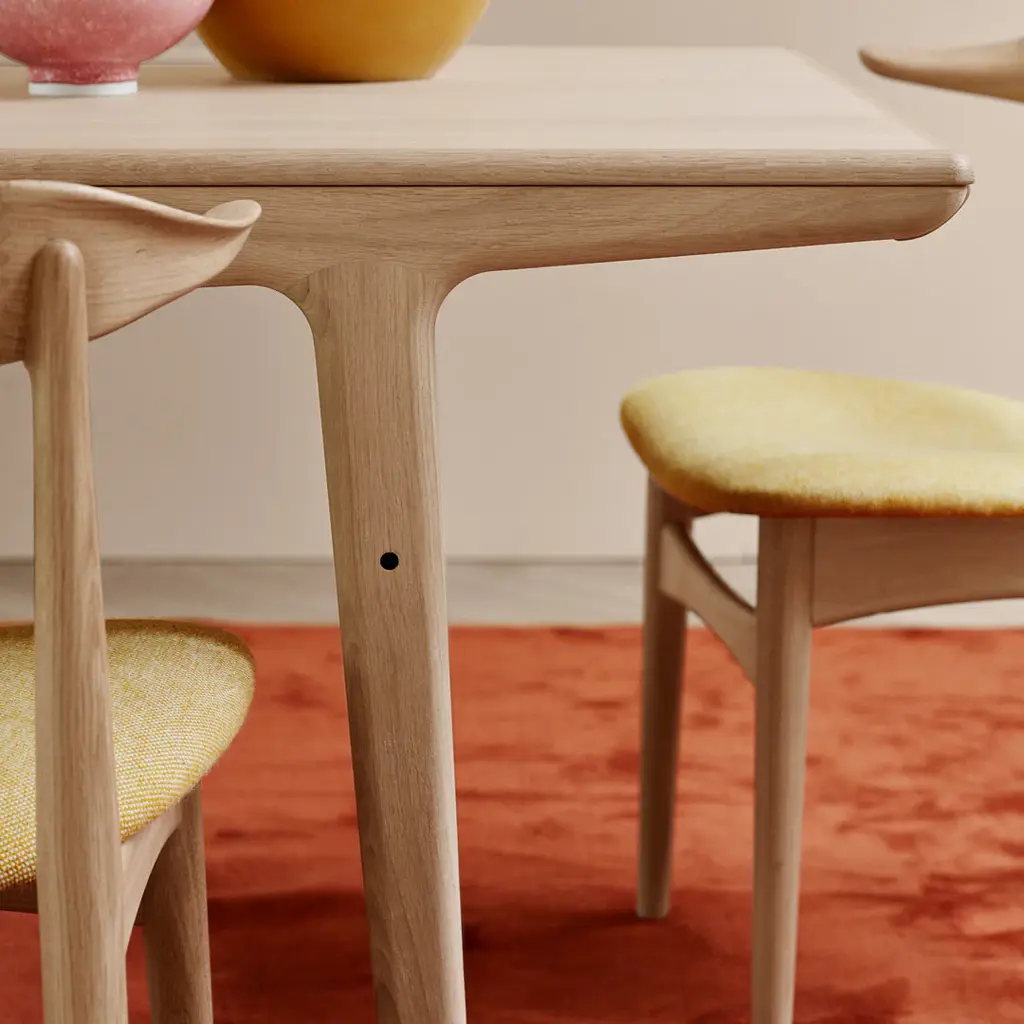 Simple and timeless design table created in the 50s by the renowned Danish furniture designer Arne Hovmand-Olsen. Evermore is a classic beauty that brings the craftsmanship and aesthetics of Danish modernism into today's dining room and conversation kitchen. The design with the typical lines of the time is characteristic of Arne Hovmand-Olsen, who lets the beautiful wood play the main role. Evermore is manufactured in both tea-oiled and oiled oak of the highest quality and is available in two sizes. Evermore can also be purchased in another variant with the possibility of extension, which is offered including additional plates.